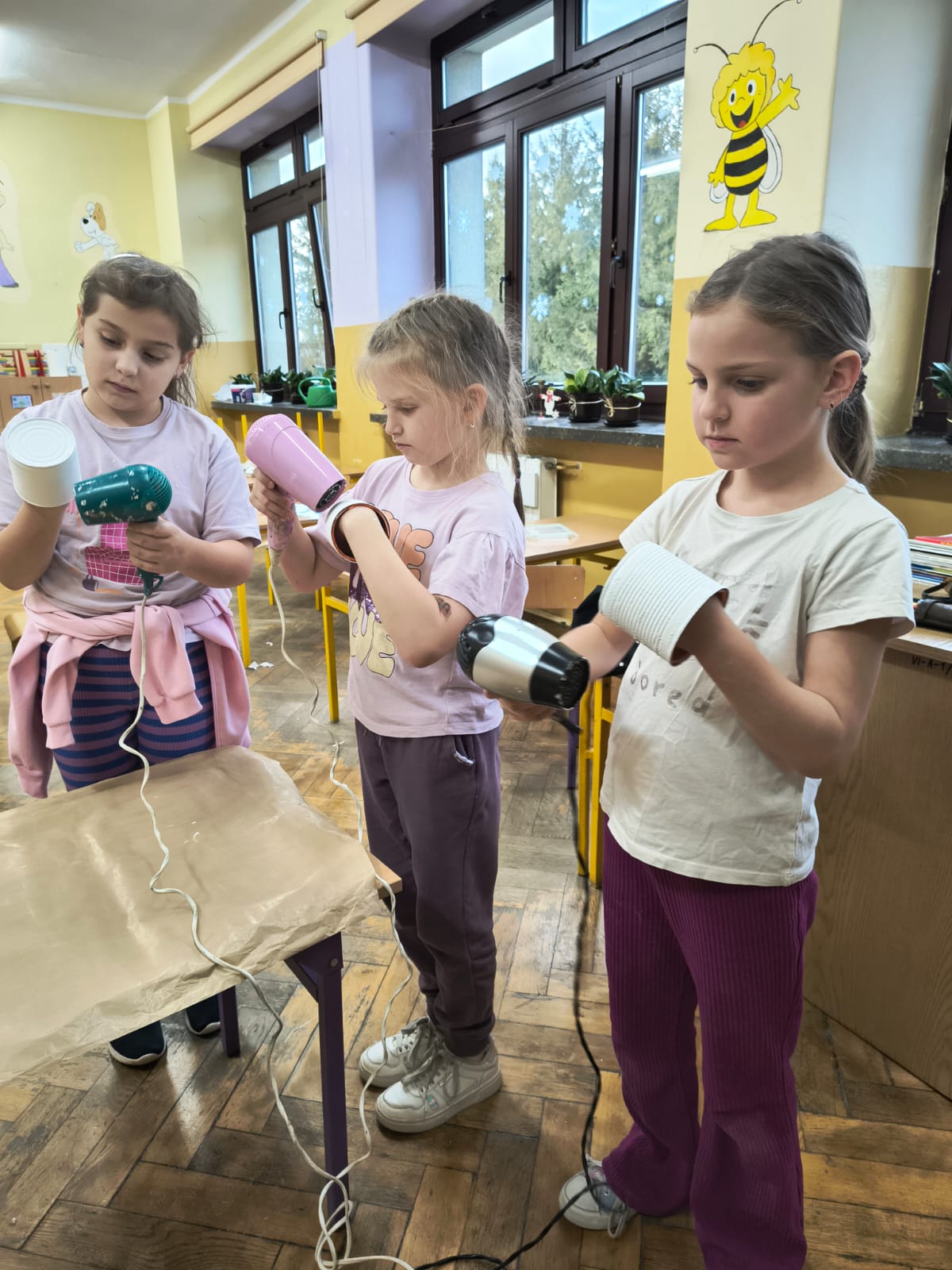 Koło zręcznych rąk prowadzone przez panią Agatę Polok, to miejsce, gdzie dzieci rozwijają swoje umiejętności manualne, ucząc się jednocześnie kreatywnego myślenia i ekologicznego podejścia do przedmiotów codziennego użytku.