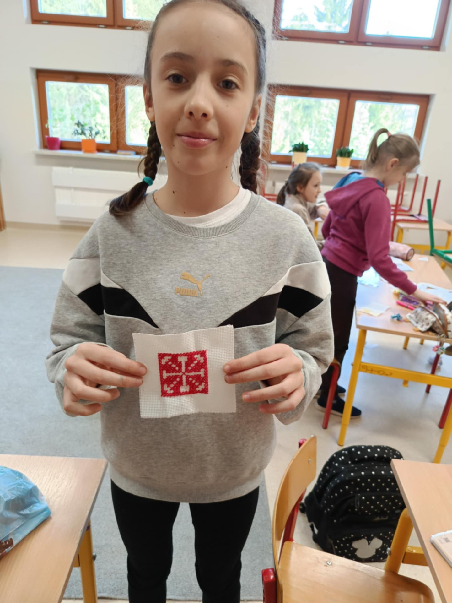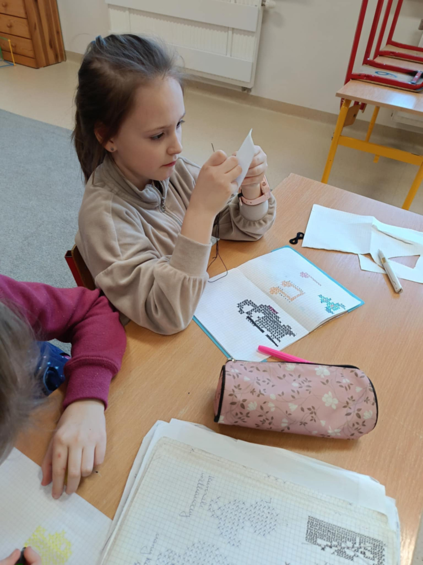 W kole haftu krzyżykowego prowadzonym przez panią Wioletę Kawulok praca wre! Z okazji zbliżającego się Dnia Matki nasi uczniowie przygotowują coś naprawdę wyjątkowego