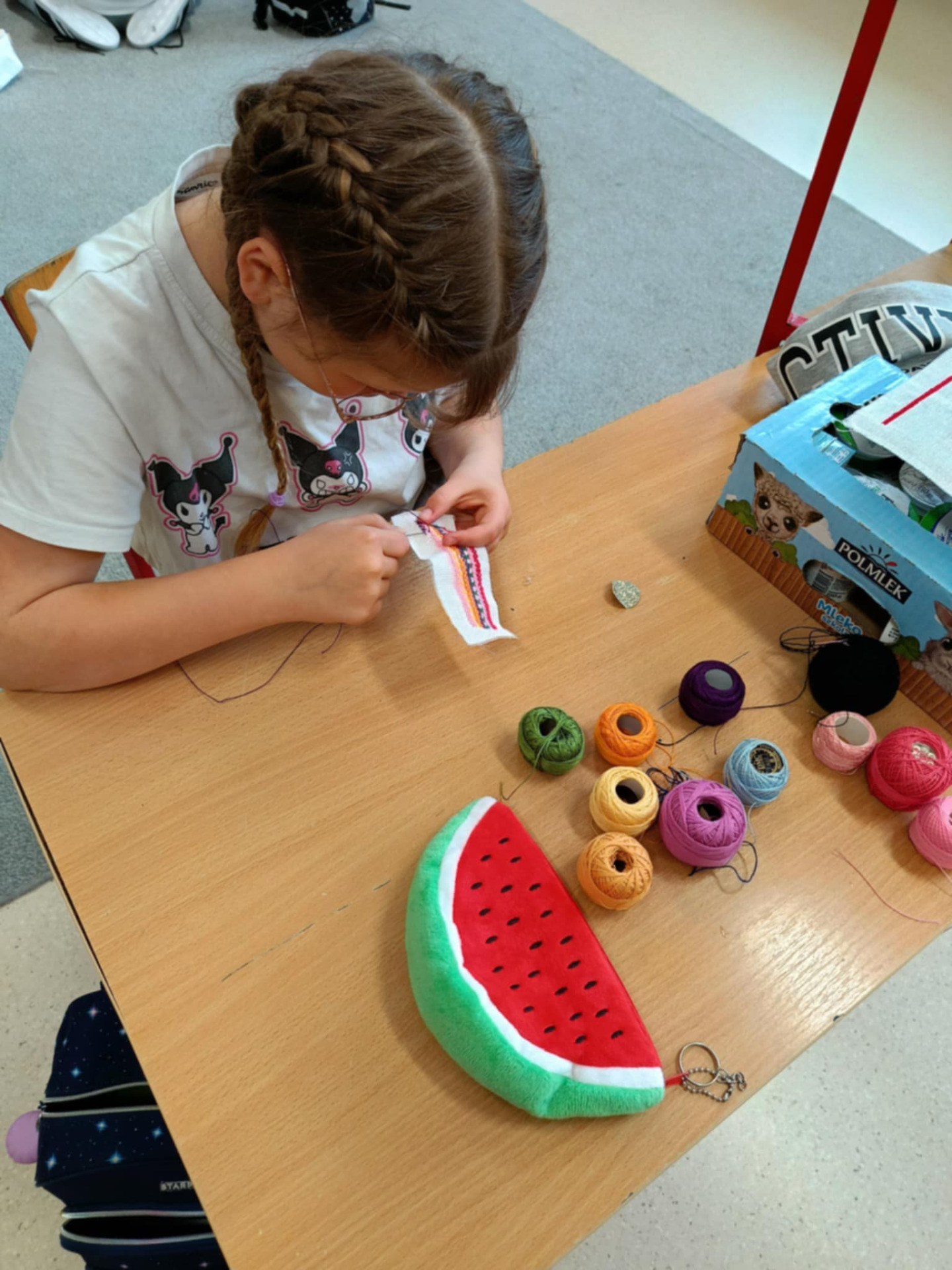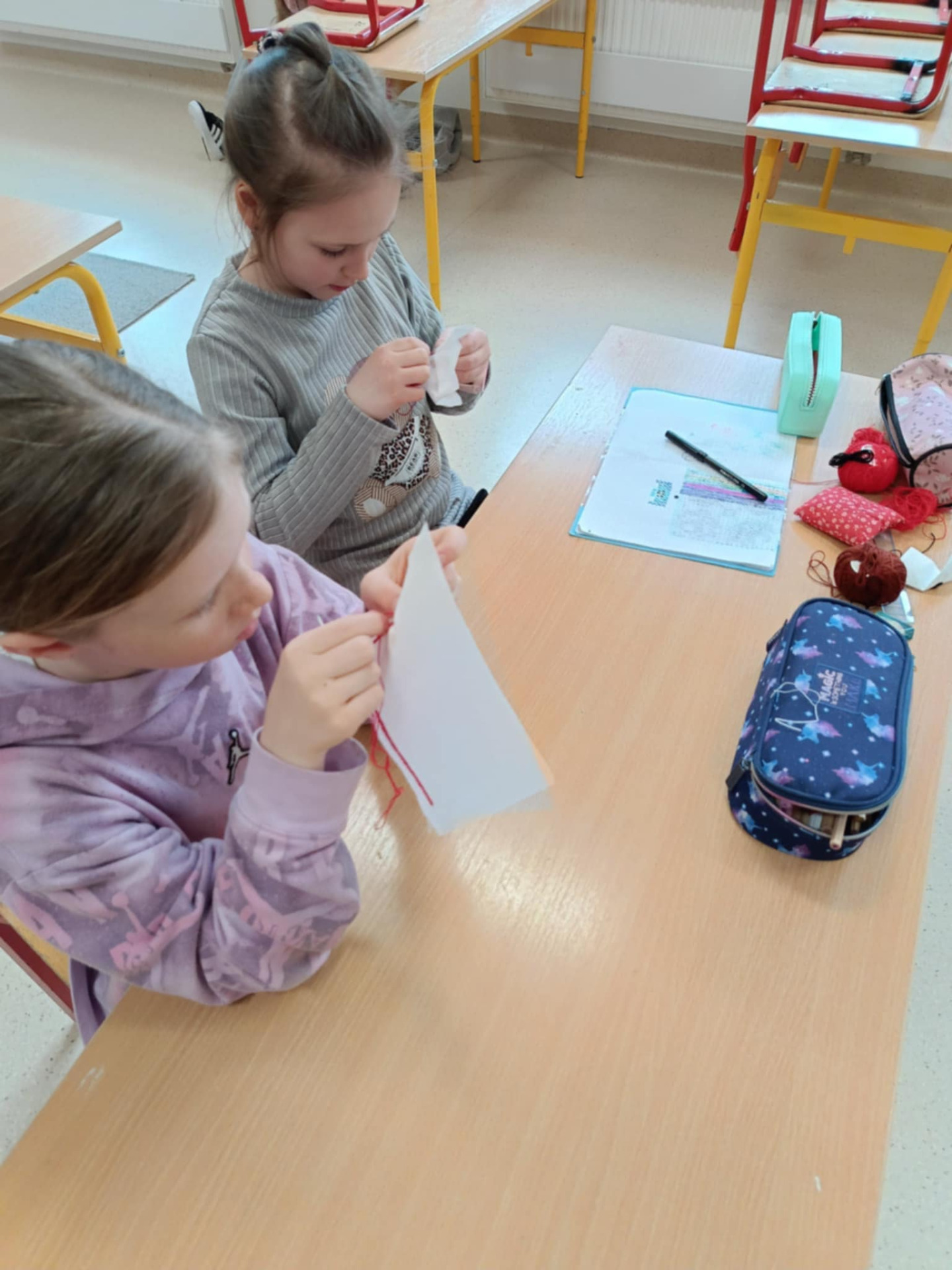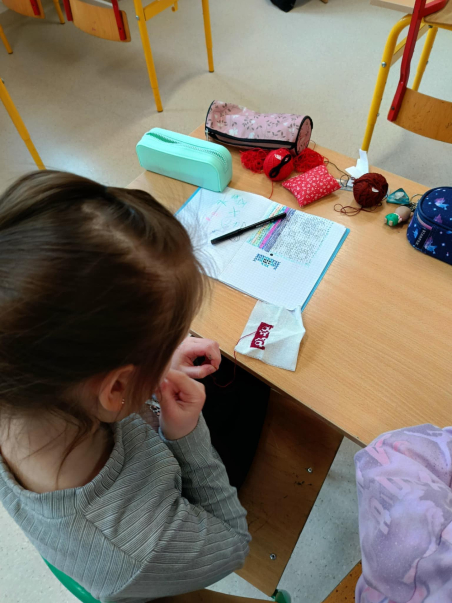 Z ogromną precyzją i cierpliwością wyhaftowali mini “znaczki” – drobne, elementy, które ozdobią laurki dla Mam