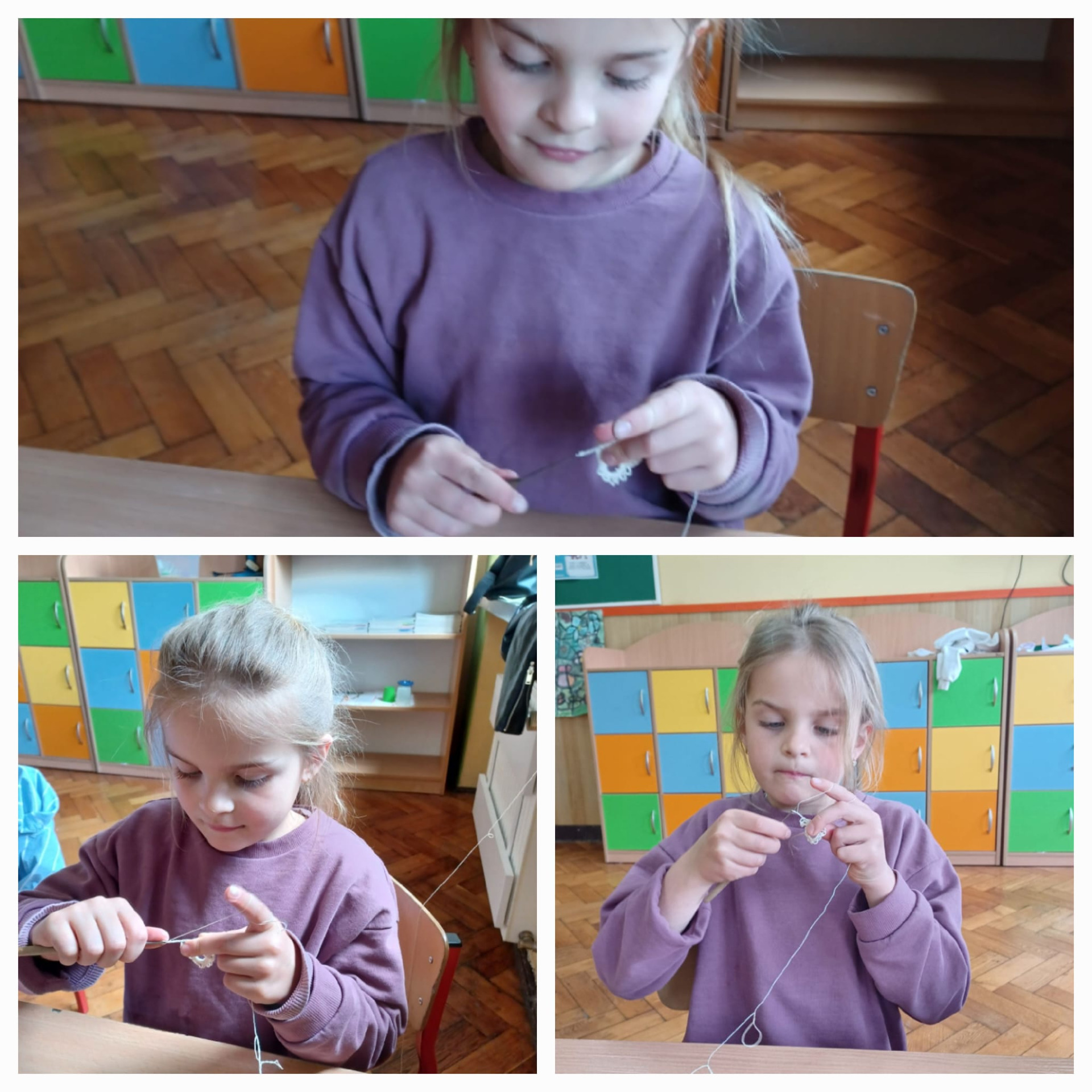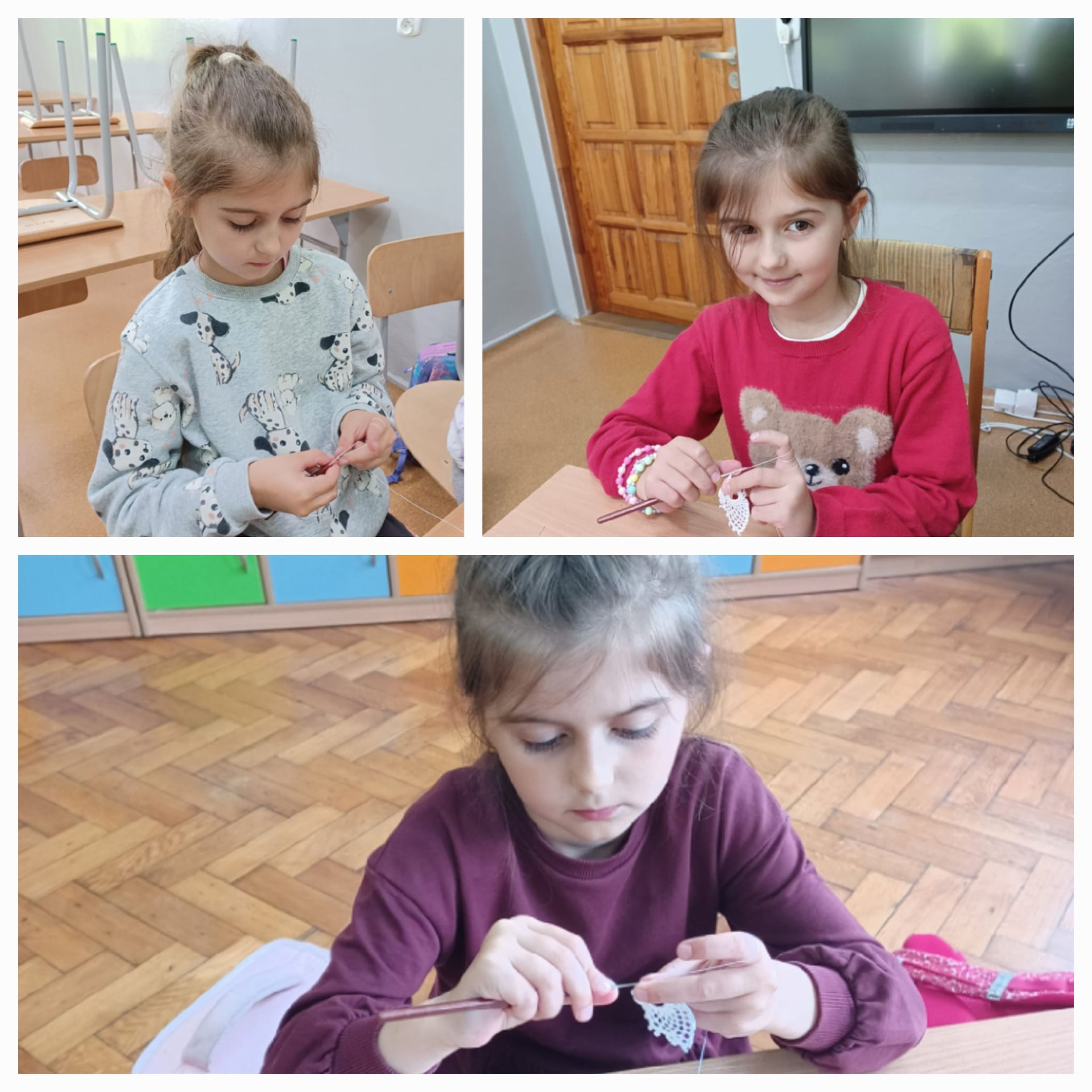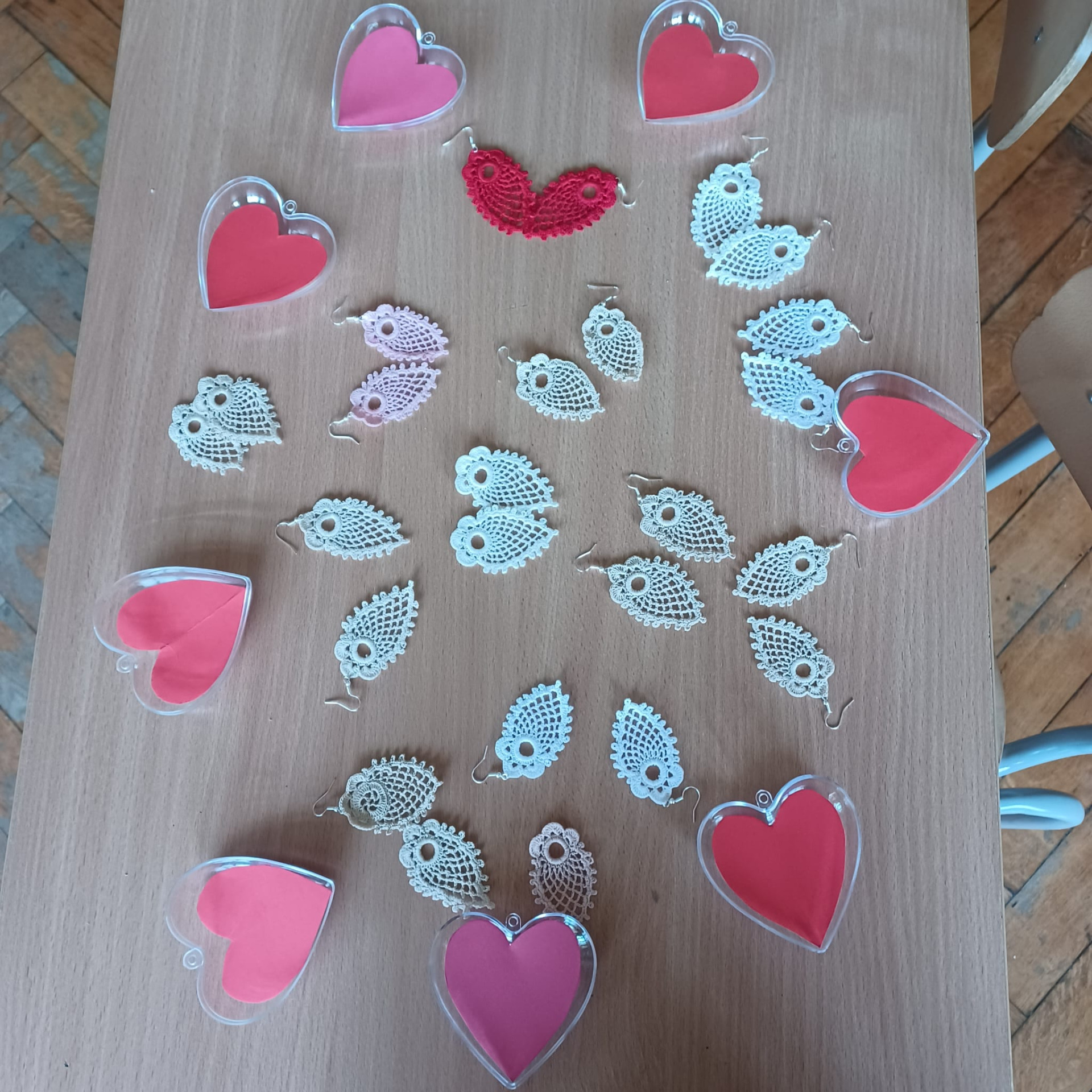 Podczas ostatnich zajęć koła koronczarskiego, pod kierunkiem pani Teresy Vavrać powstały przepiękne delikatne, koronkowe kolczyki dla Mamy, wykonane szydełkiem z ogromnym zaangażowaniem.