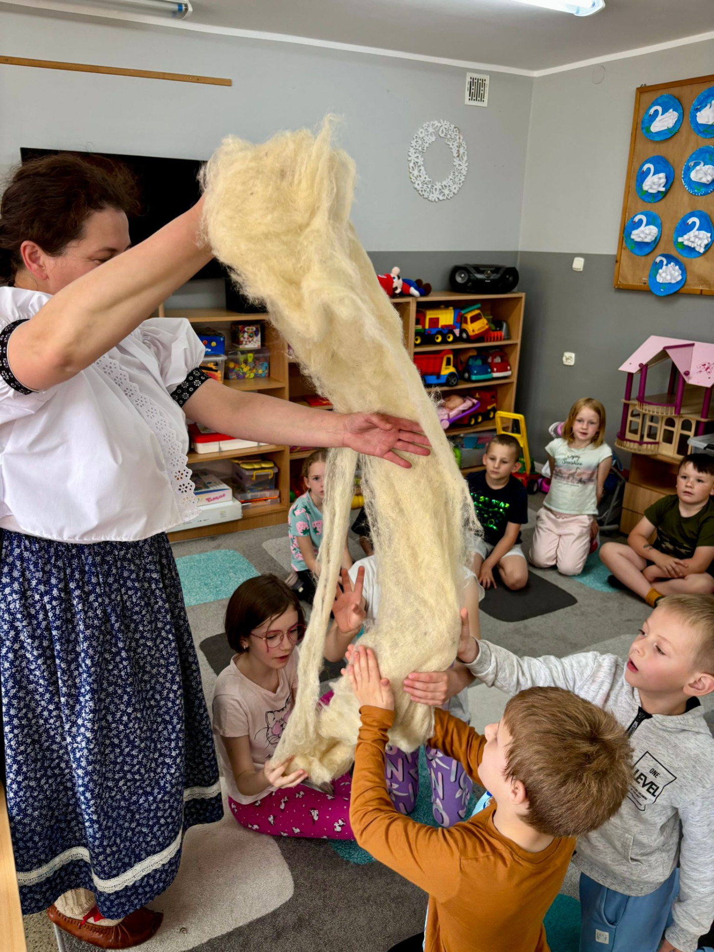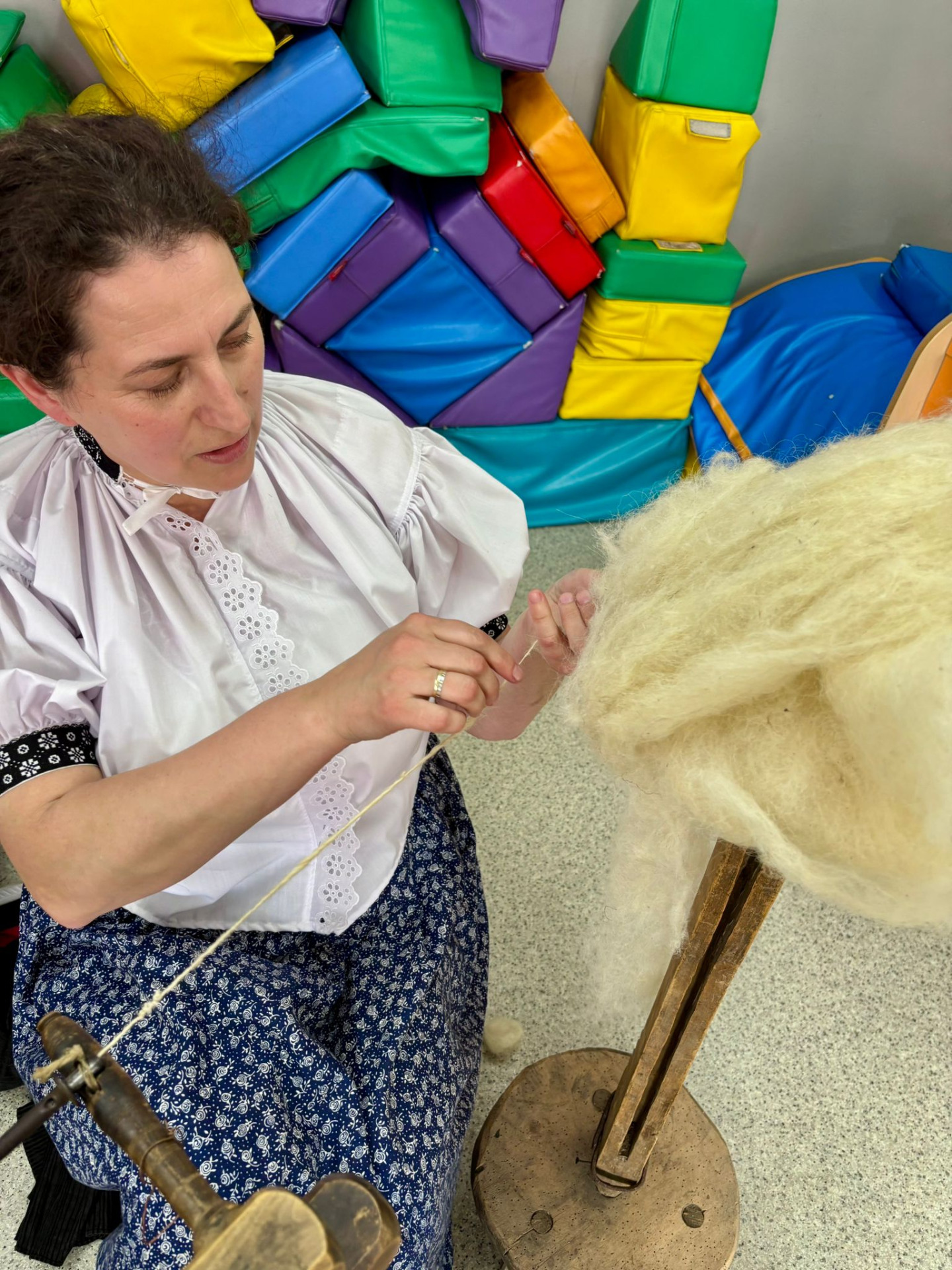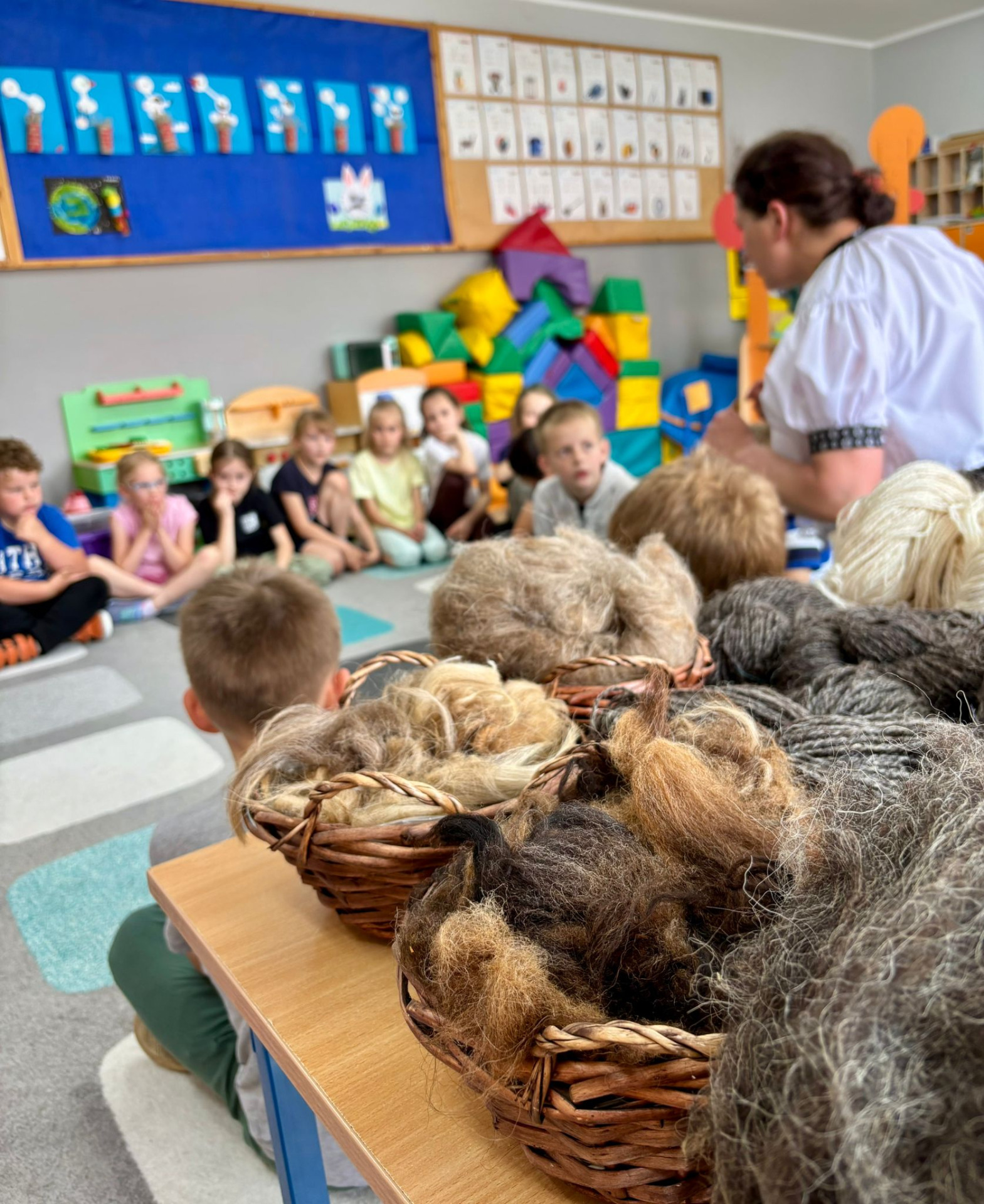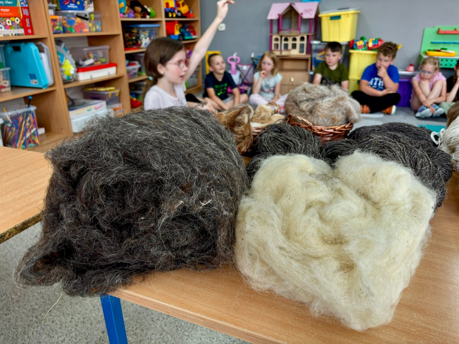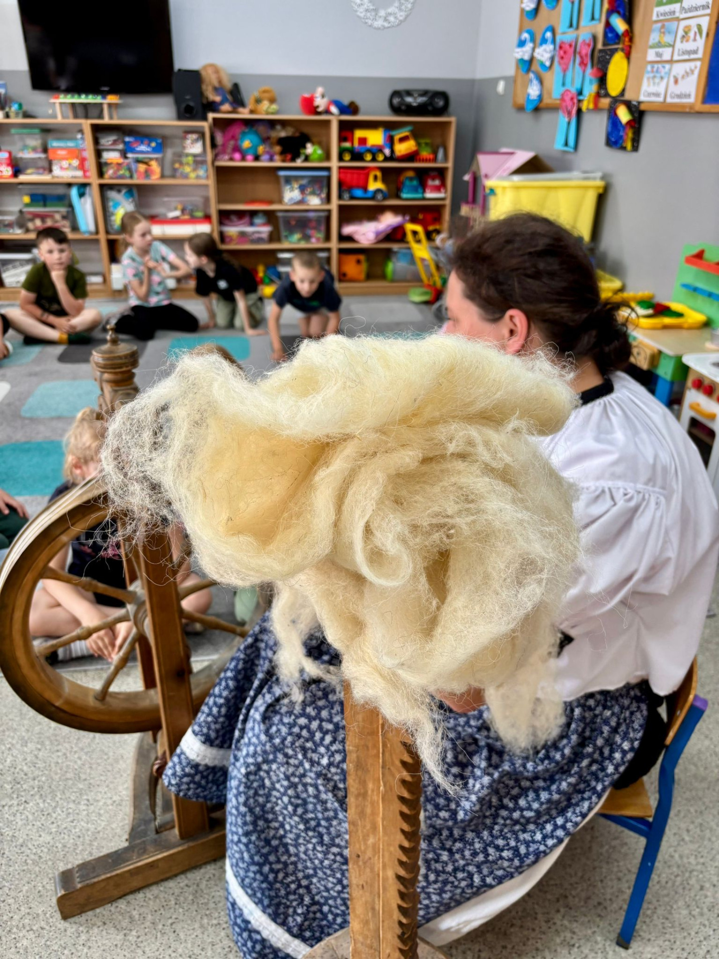 . Opowiedziała ona i pokazała, jak dawniej na wiele sposobów obrabiało się wełnę – zaczynając od strzyżenia owiec