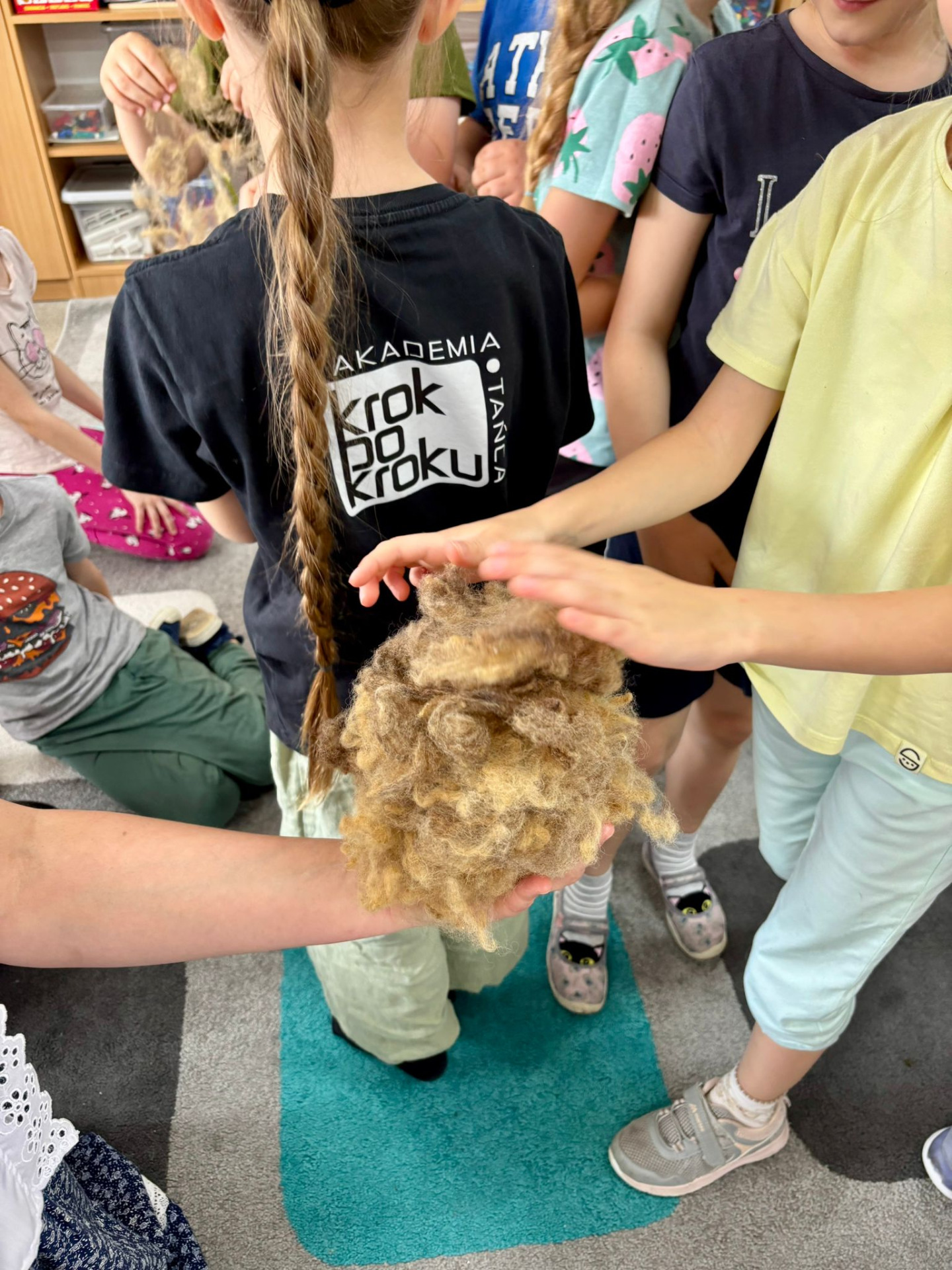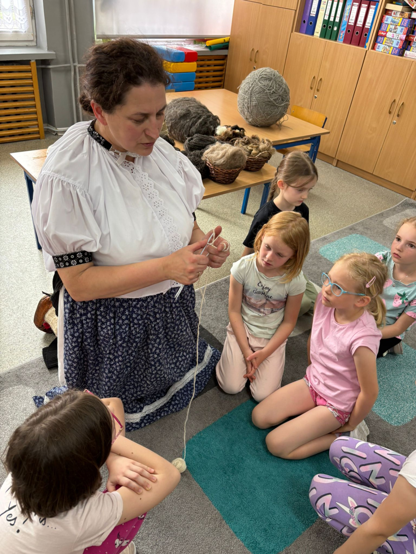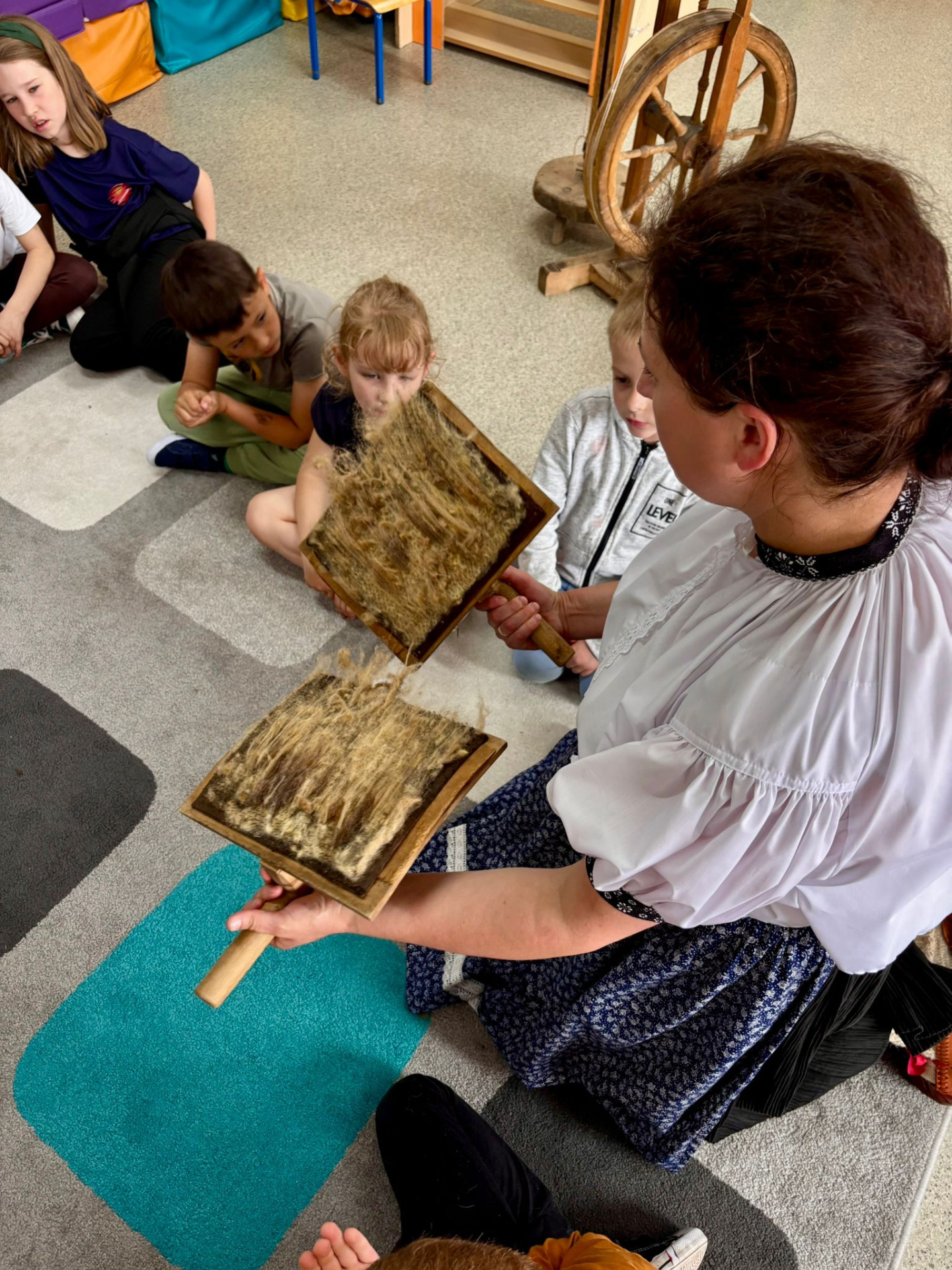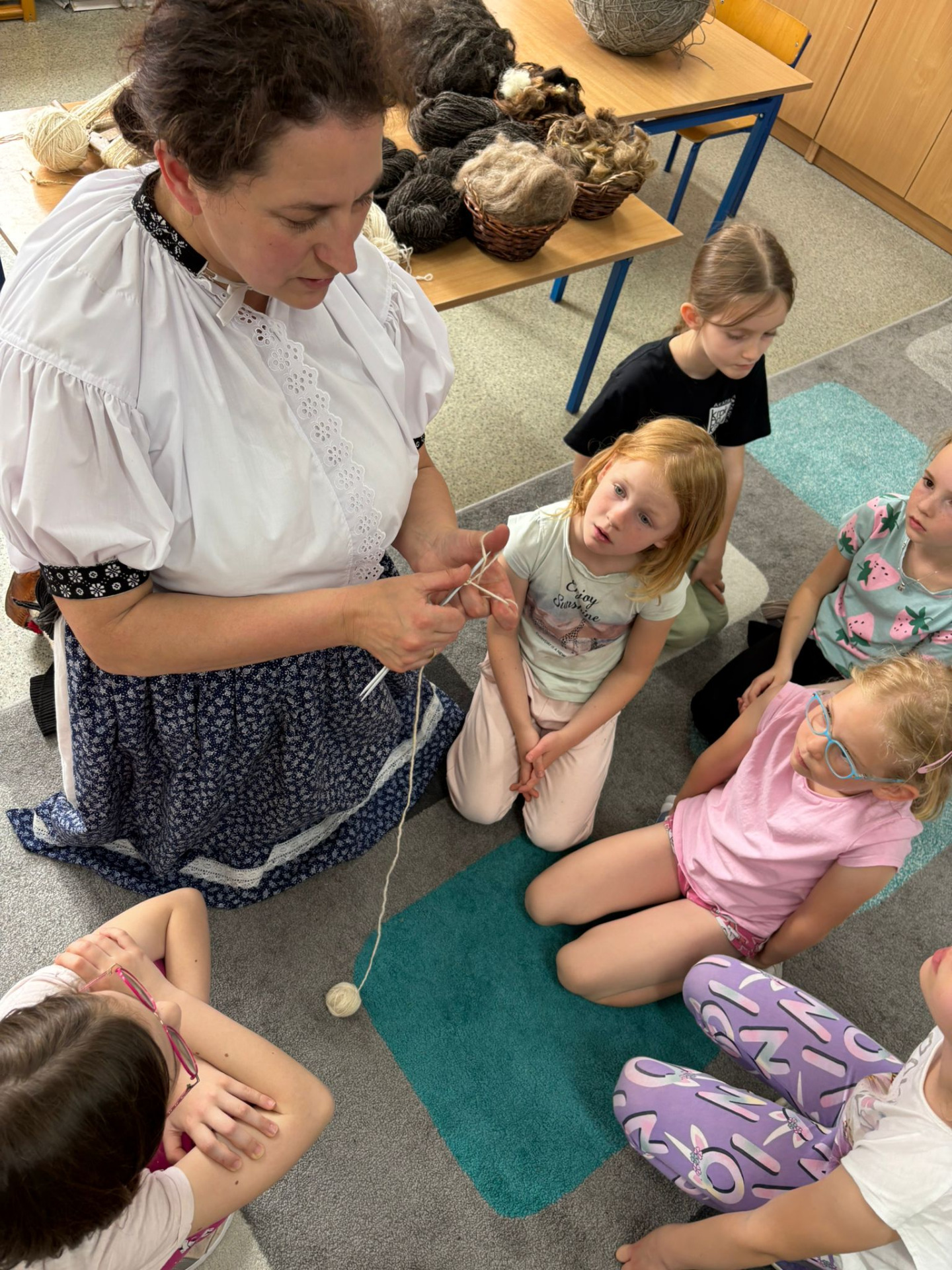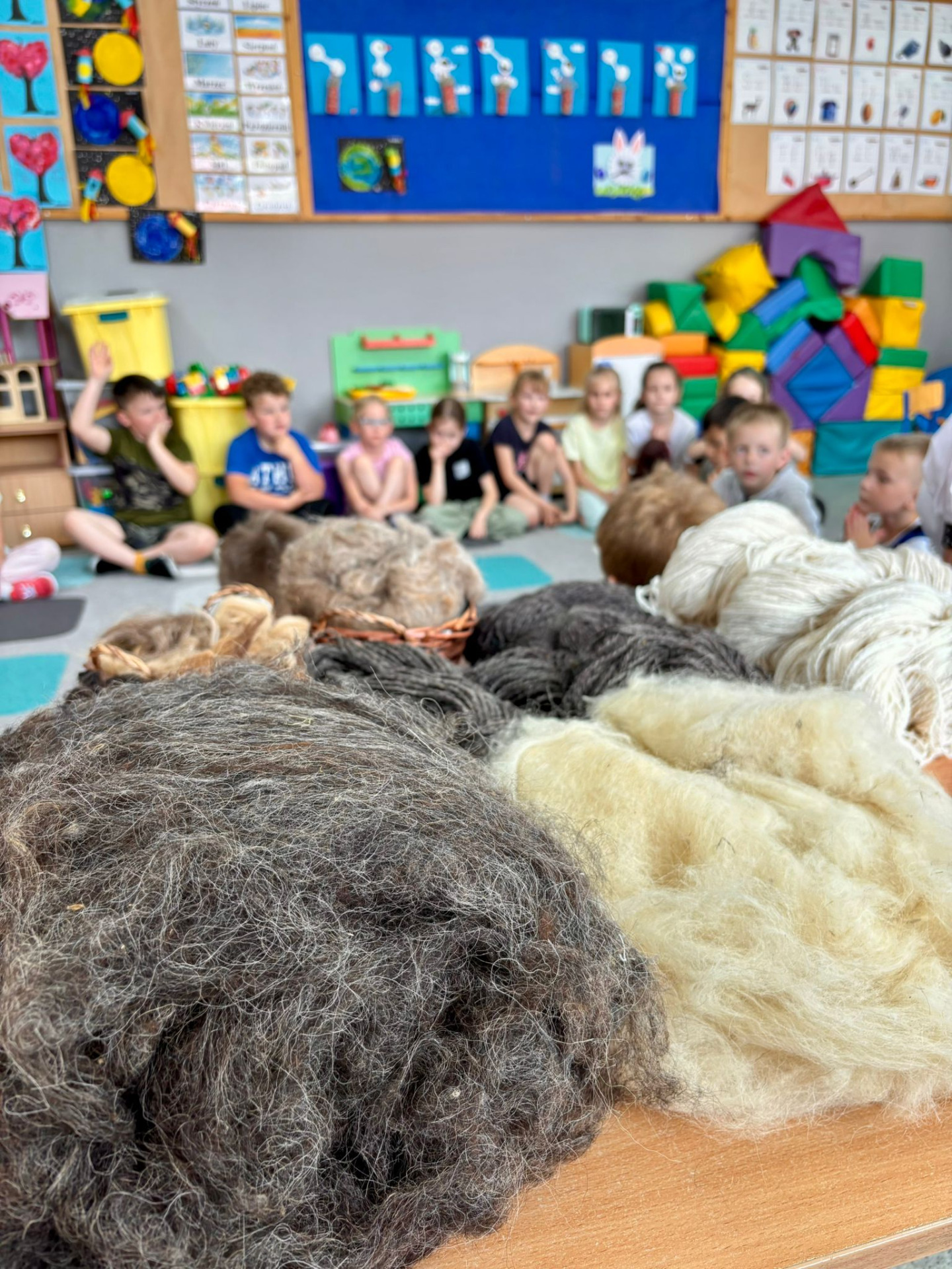 . Opowiedziała ona i pokazała, jak dawniej na wiele sposobów obrabiało się wełnę – zaczynając od strzyżenia owiec