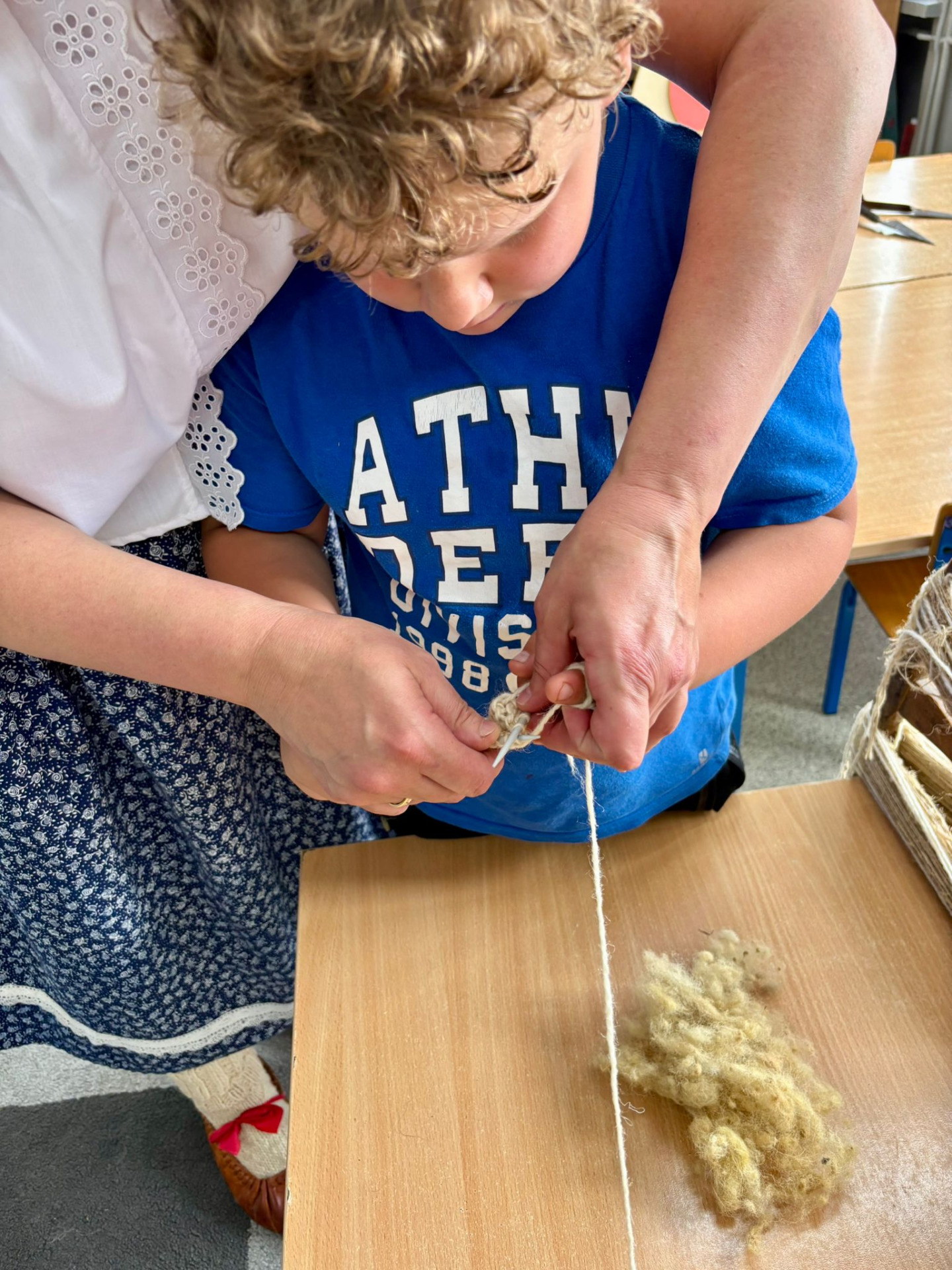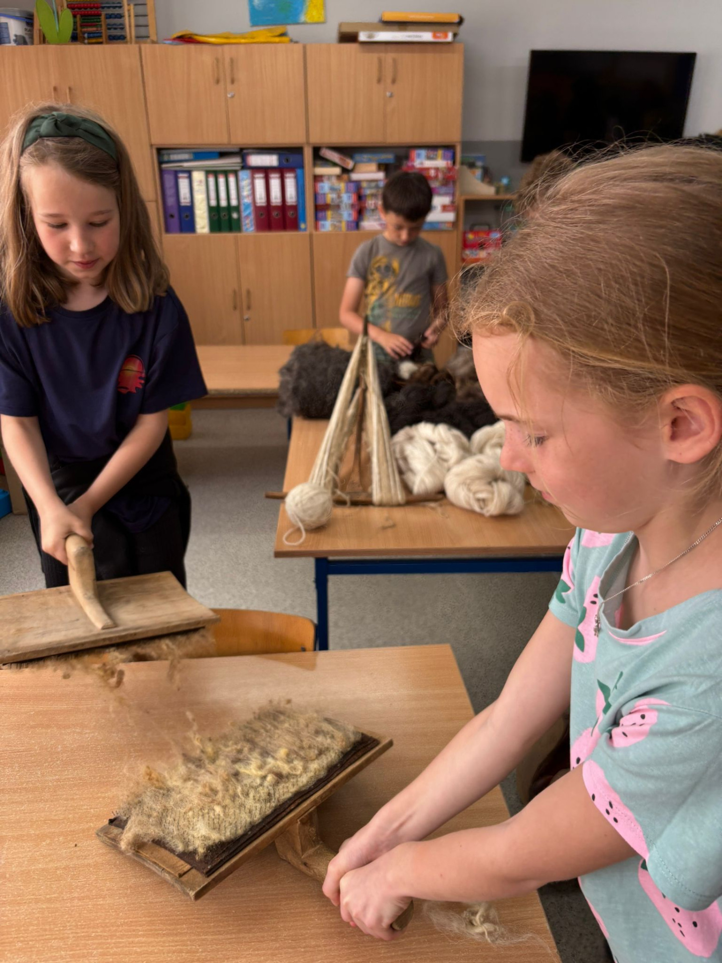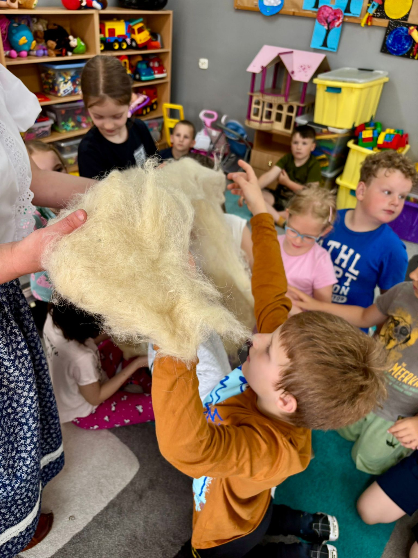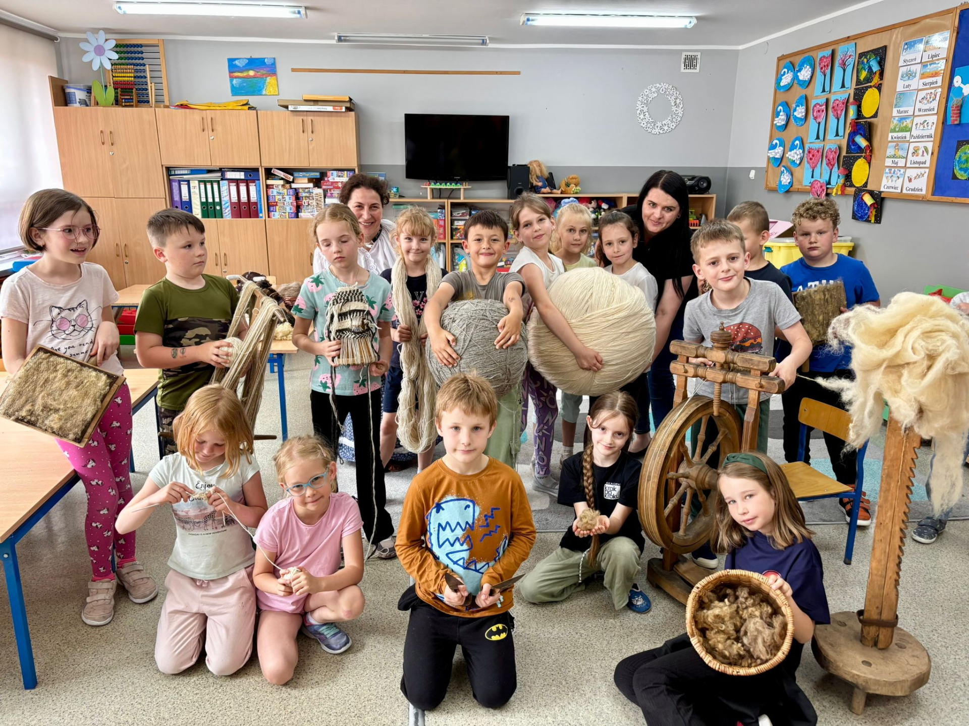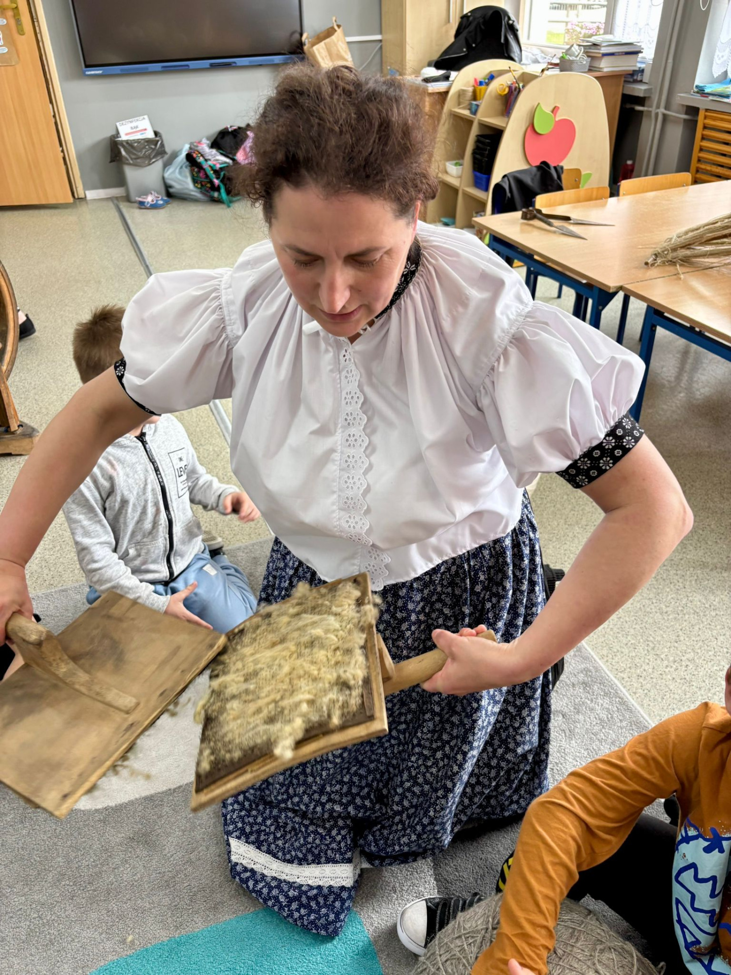 . Opowiedziała ona i pokazała, jak dawniej na wiele sposobów obrabiało się wełnę – zaczynając od strzyżenia owiec