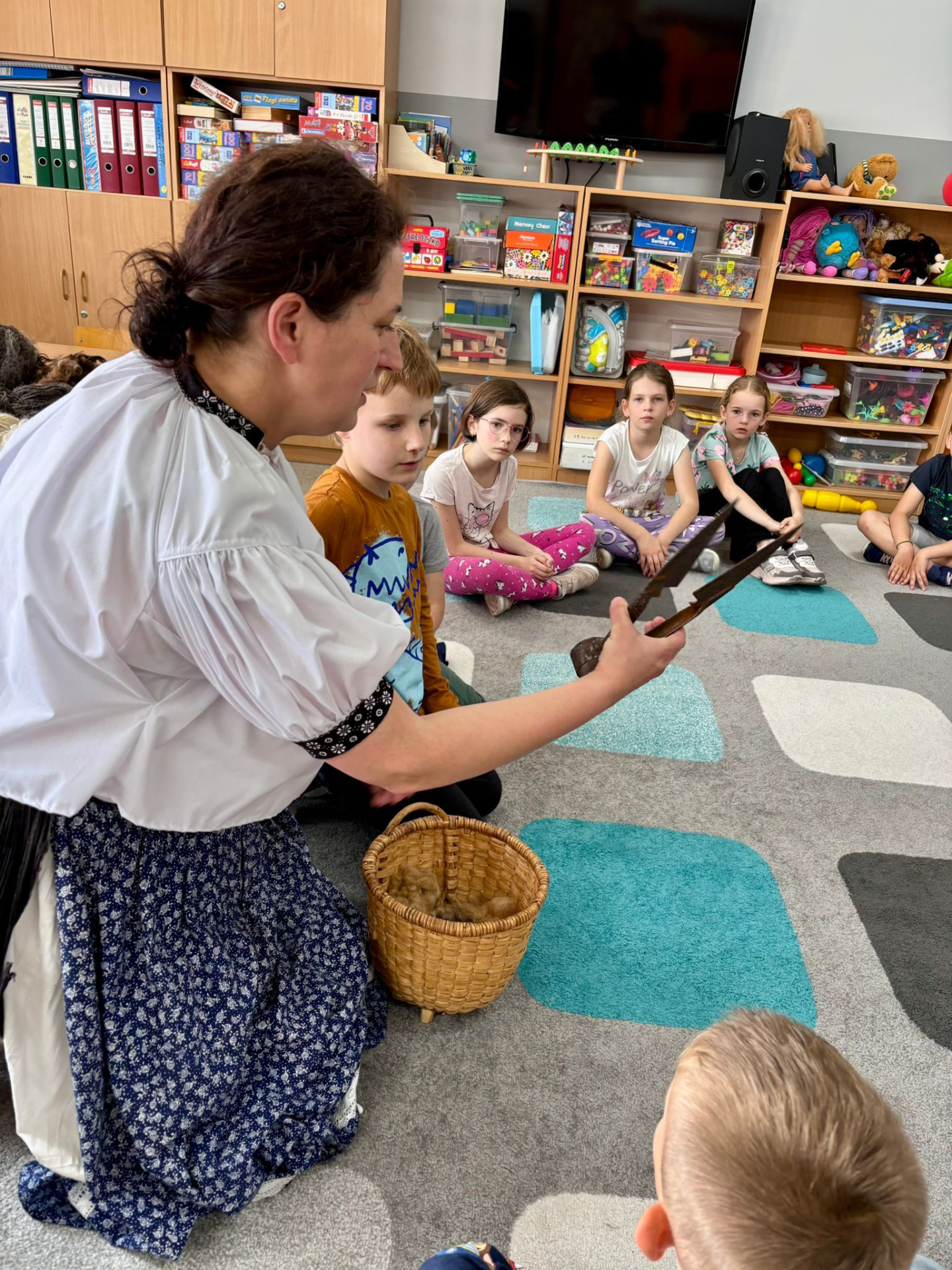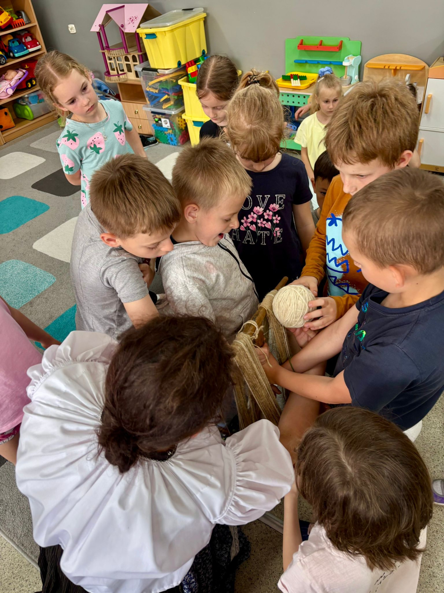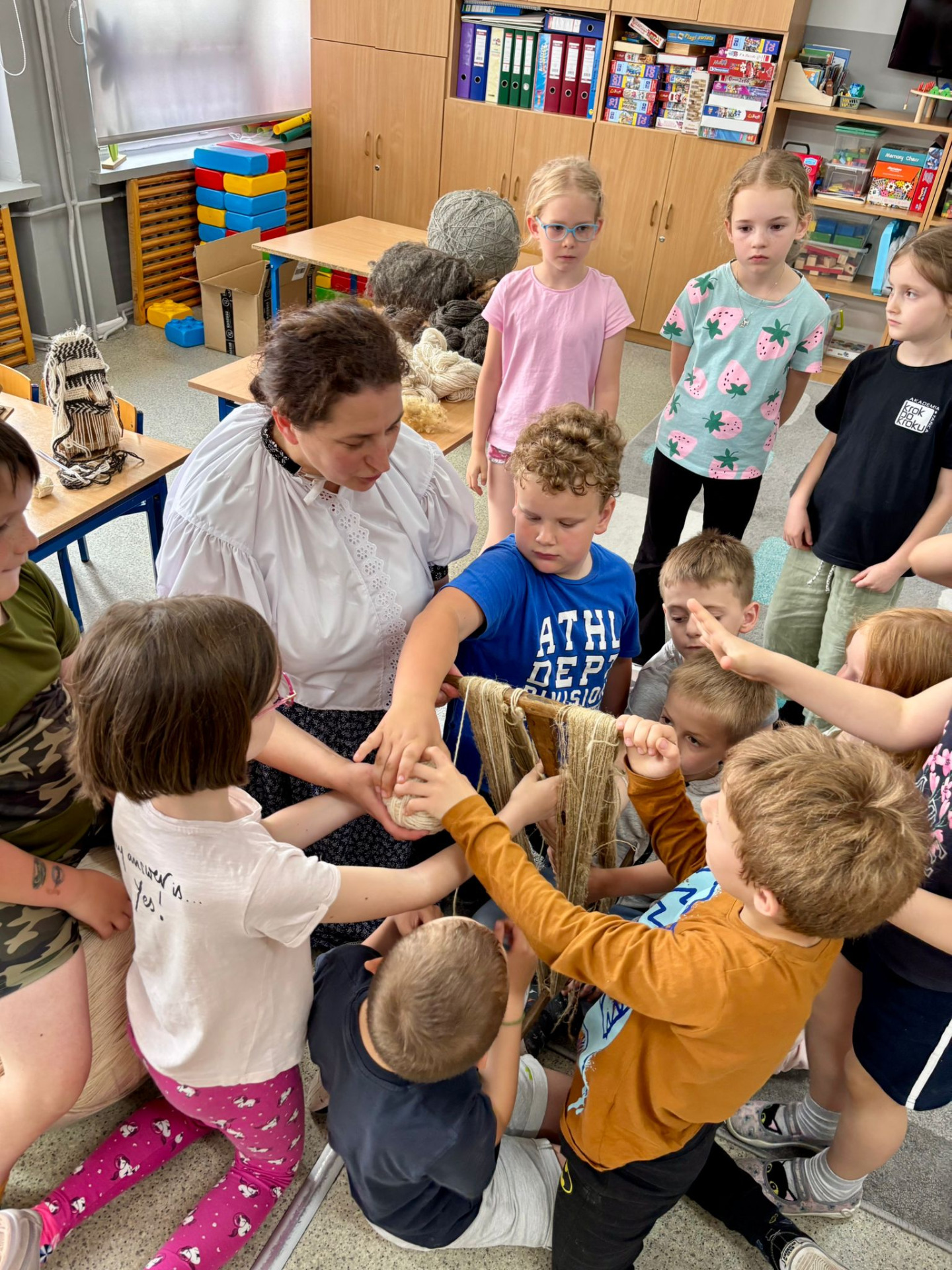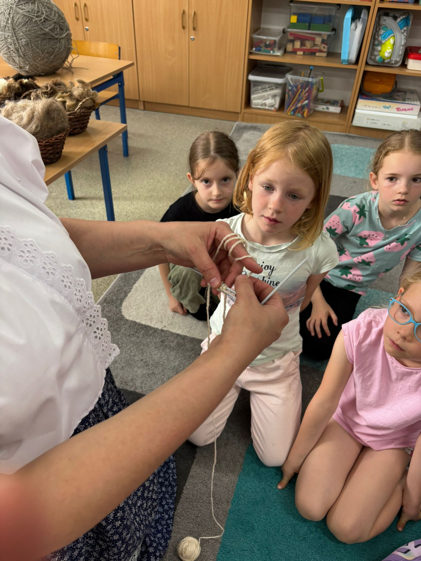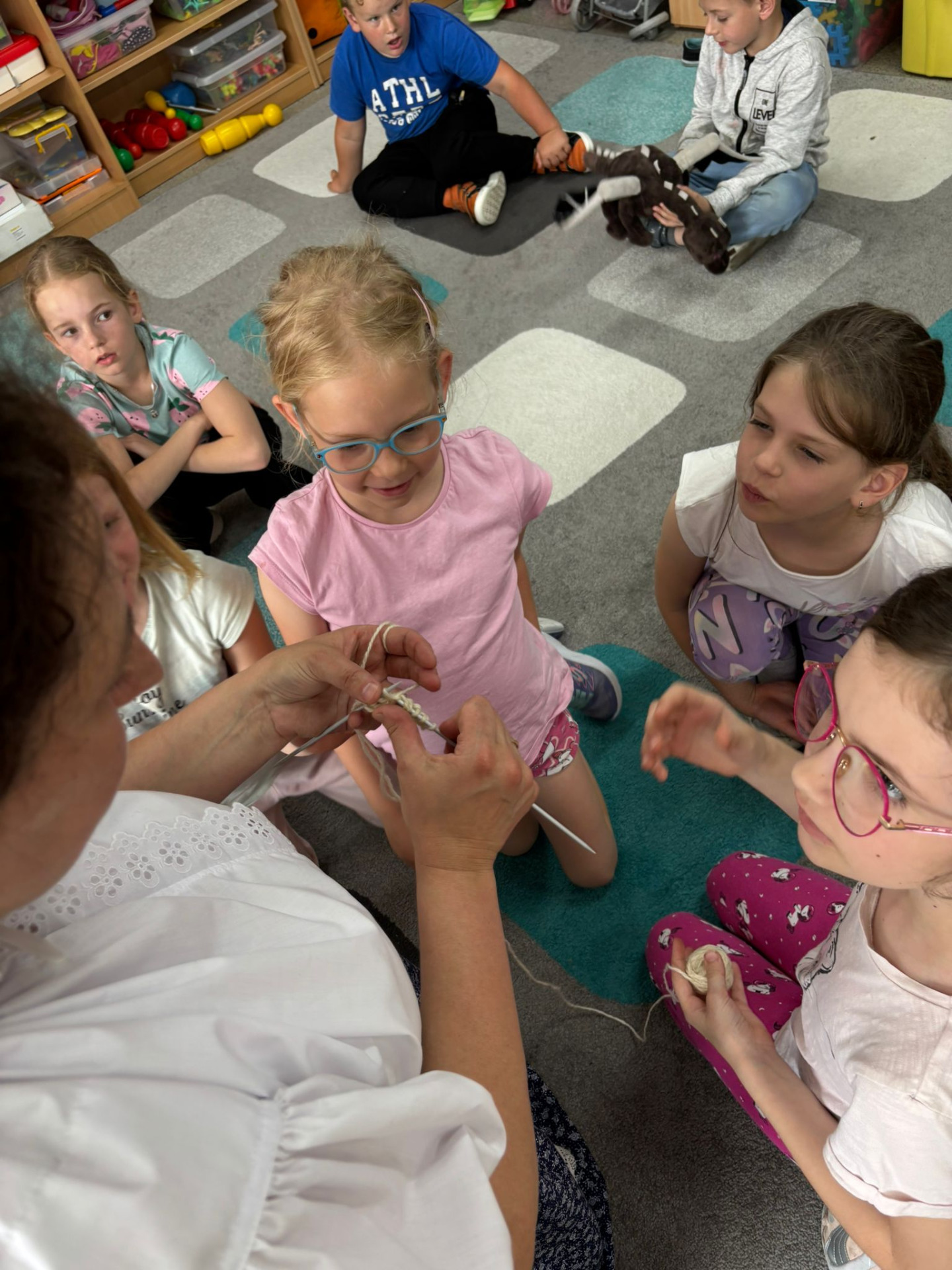 , której dzieci mogły dotknąć. Najmłodsi okazali się bardzo pojętnymi uczniami, na przykład jeśli chodzi o zapomnianą dziś sztukę „sztrykowania” .