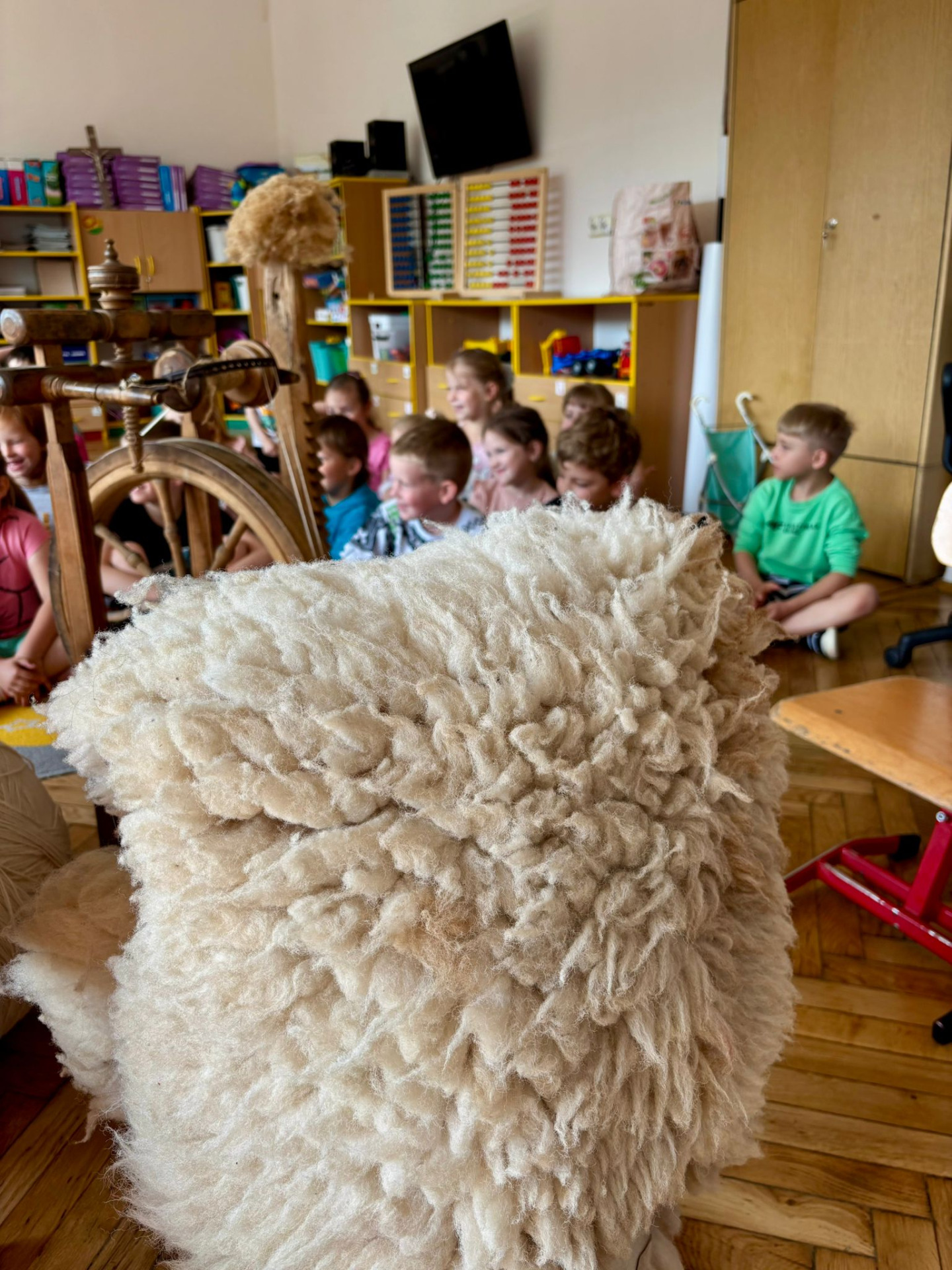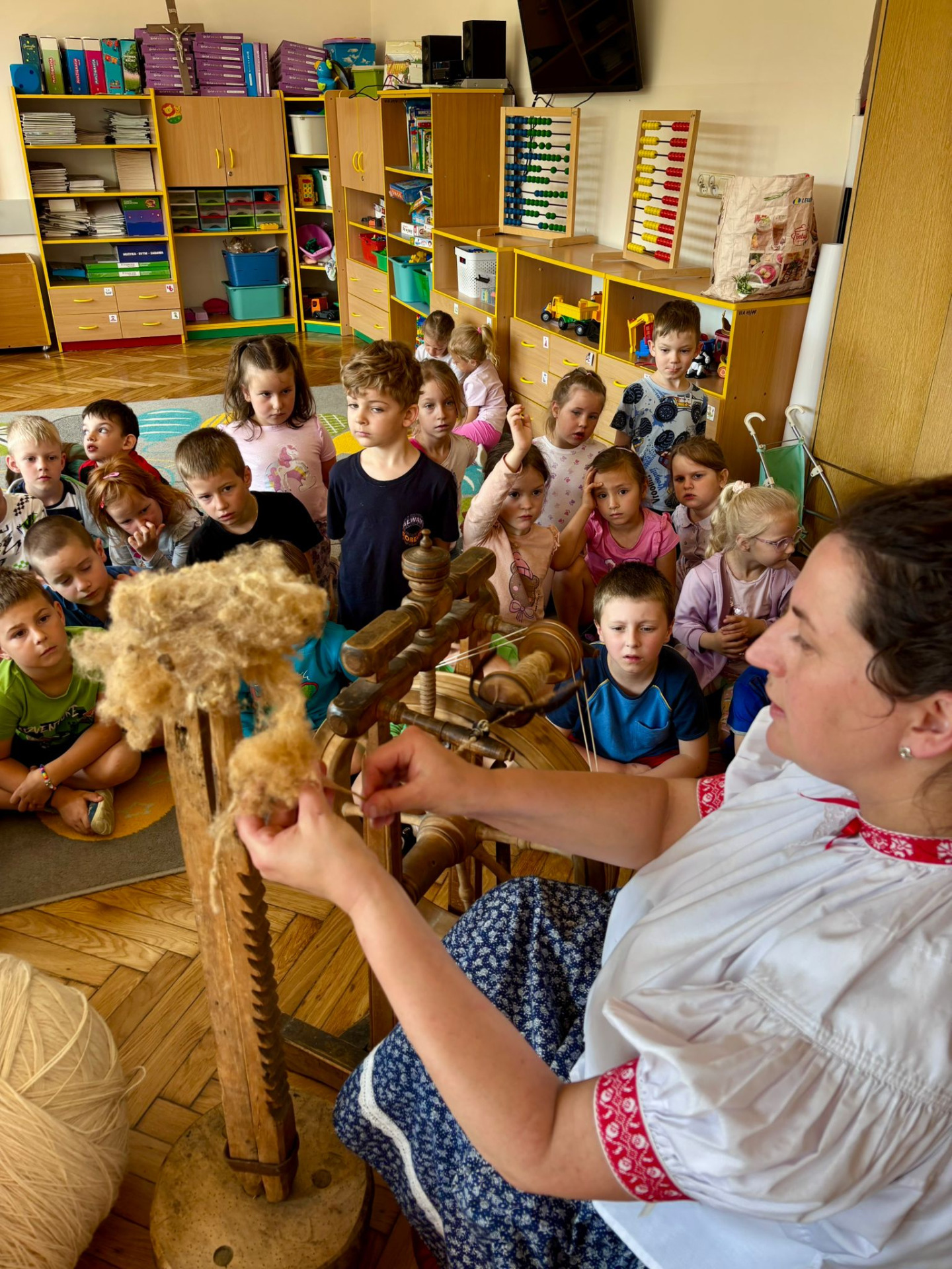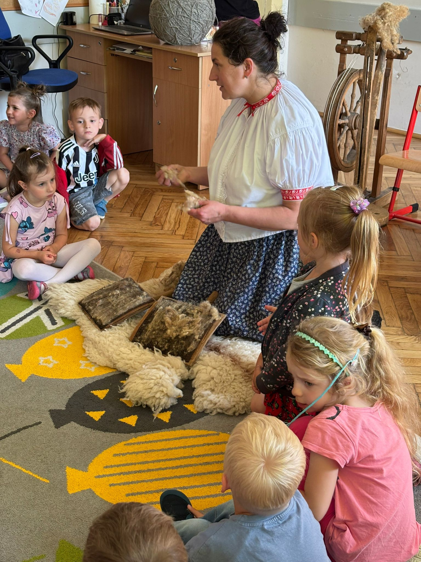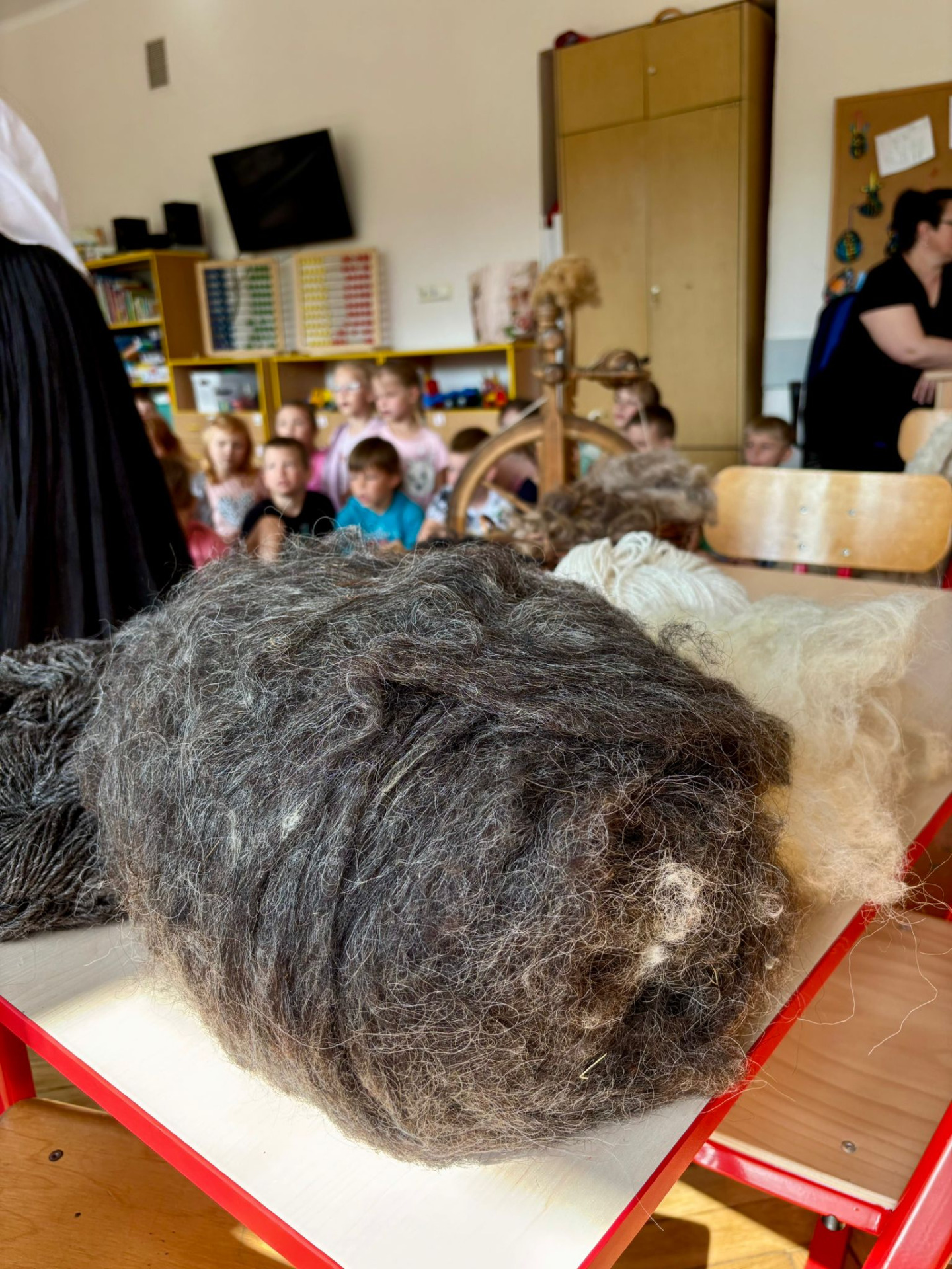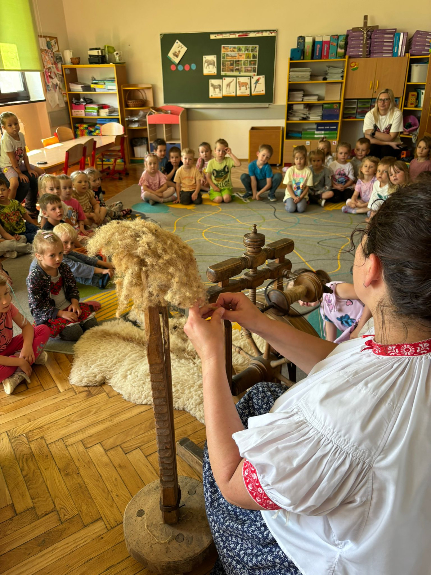 , która z pasją pokazała dzieciom, jak kiedyś przetwarzano owczą wełnę – od strzyżenia owiec
