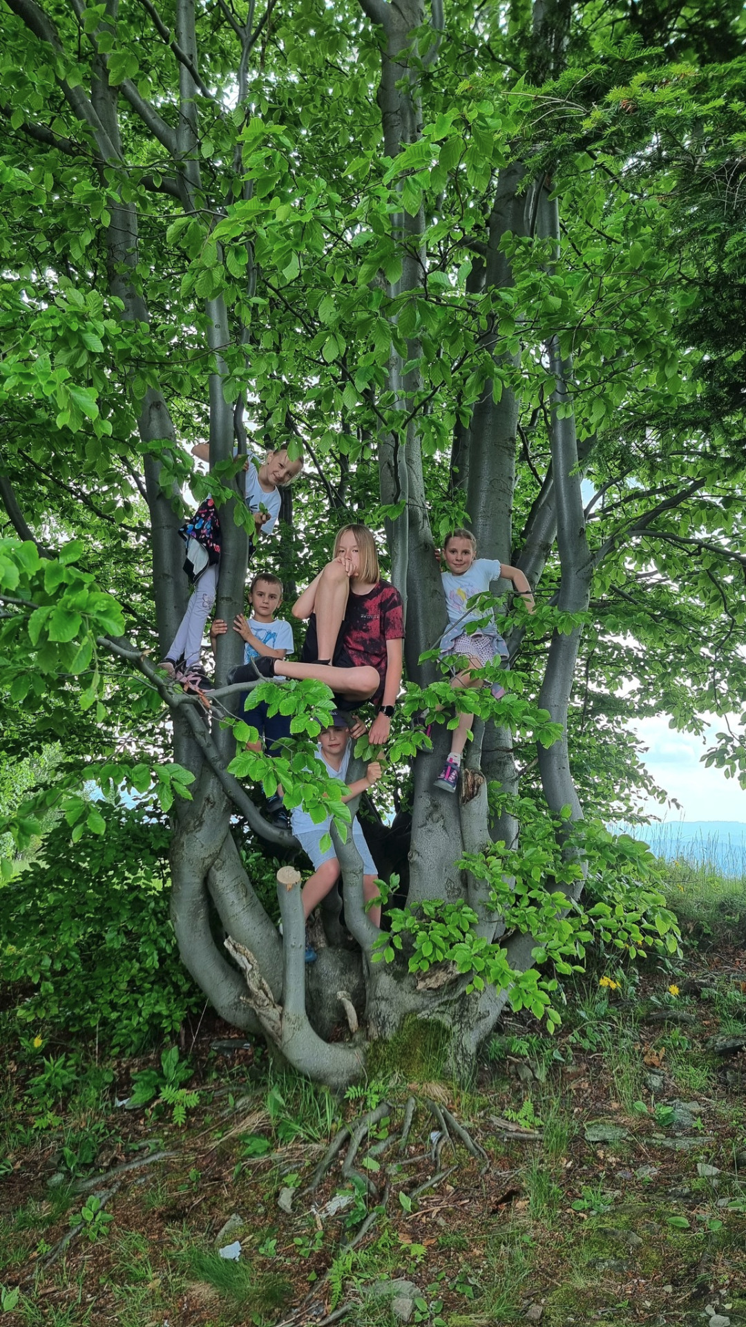 Były śmiechy, poziomki, turlanie z gorki i setki pytań typu „a ile jeszcze?”. Ale było warto – bo na szczycie czekał nas nie tylko piękny widok, ale też satysfakcja i wspólne zdjęcie pełne radości z naszą Ochodzitą w tle