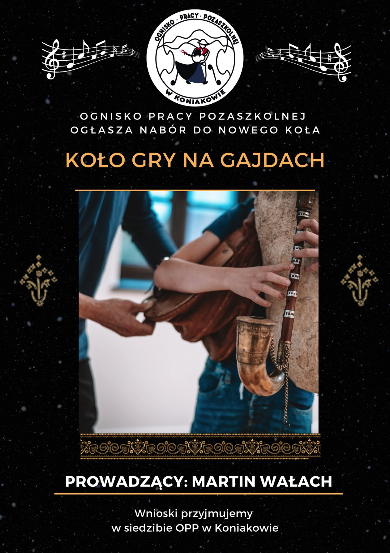 Z radością ogłaszamy nabór do nowego Koła gry na gajdach, które poprowadzi pan Martin Walach – utalentowany muzyk, pasjonat tradycyjnych instrumentów beskidzkich i doświadczony instruktor, który swoją wiedzą i muzyczną energią zaraża młode pokolenia.