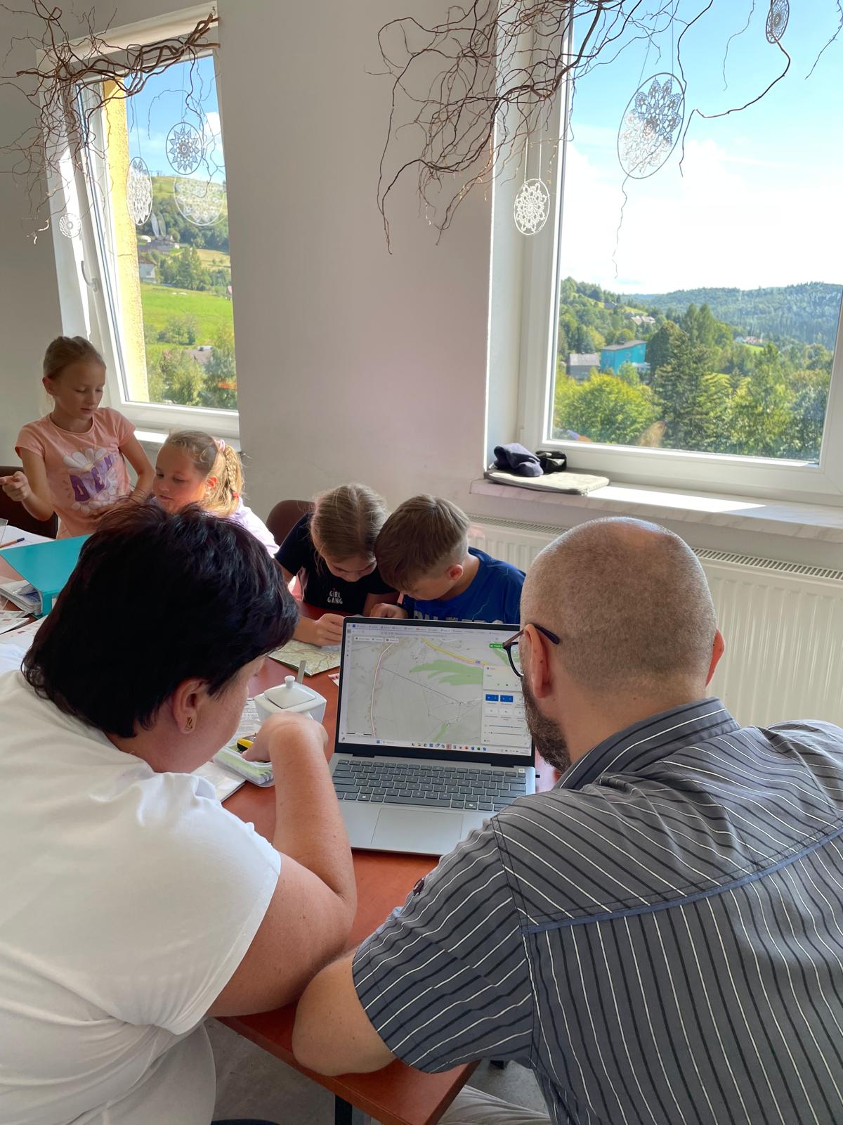 Po drodze odkrywaliśmy ciekawe miejsca, opowiadaliśmy sobie lokalne historie i szukaliśmy pomysłów na zagadki oraz miejsca ukrycia naszego skarbu.