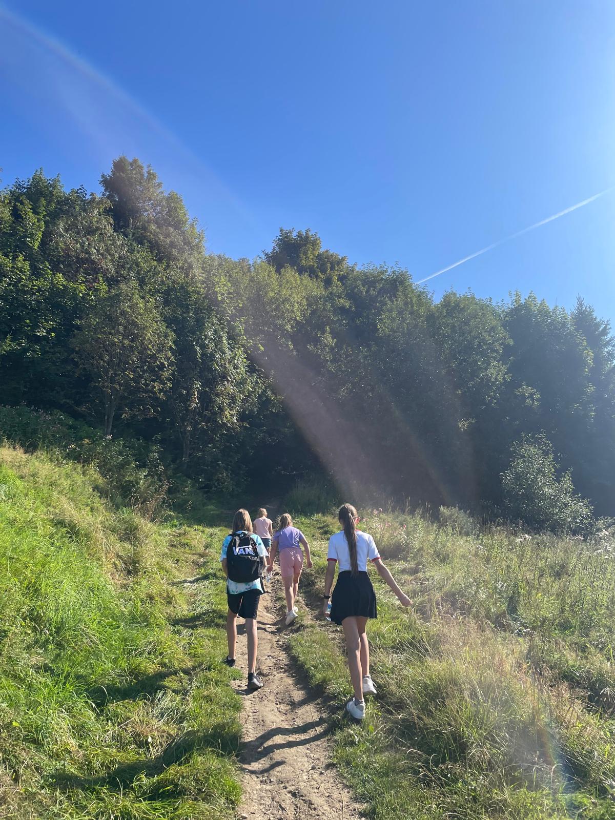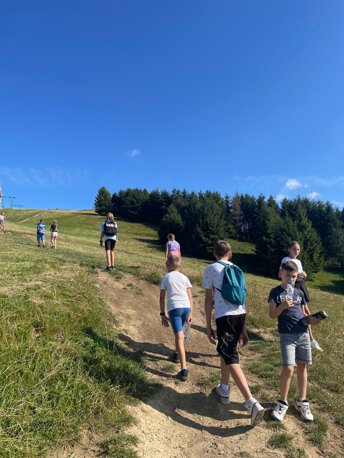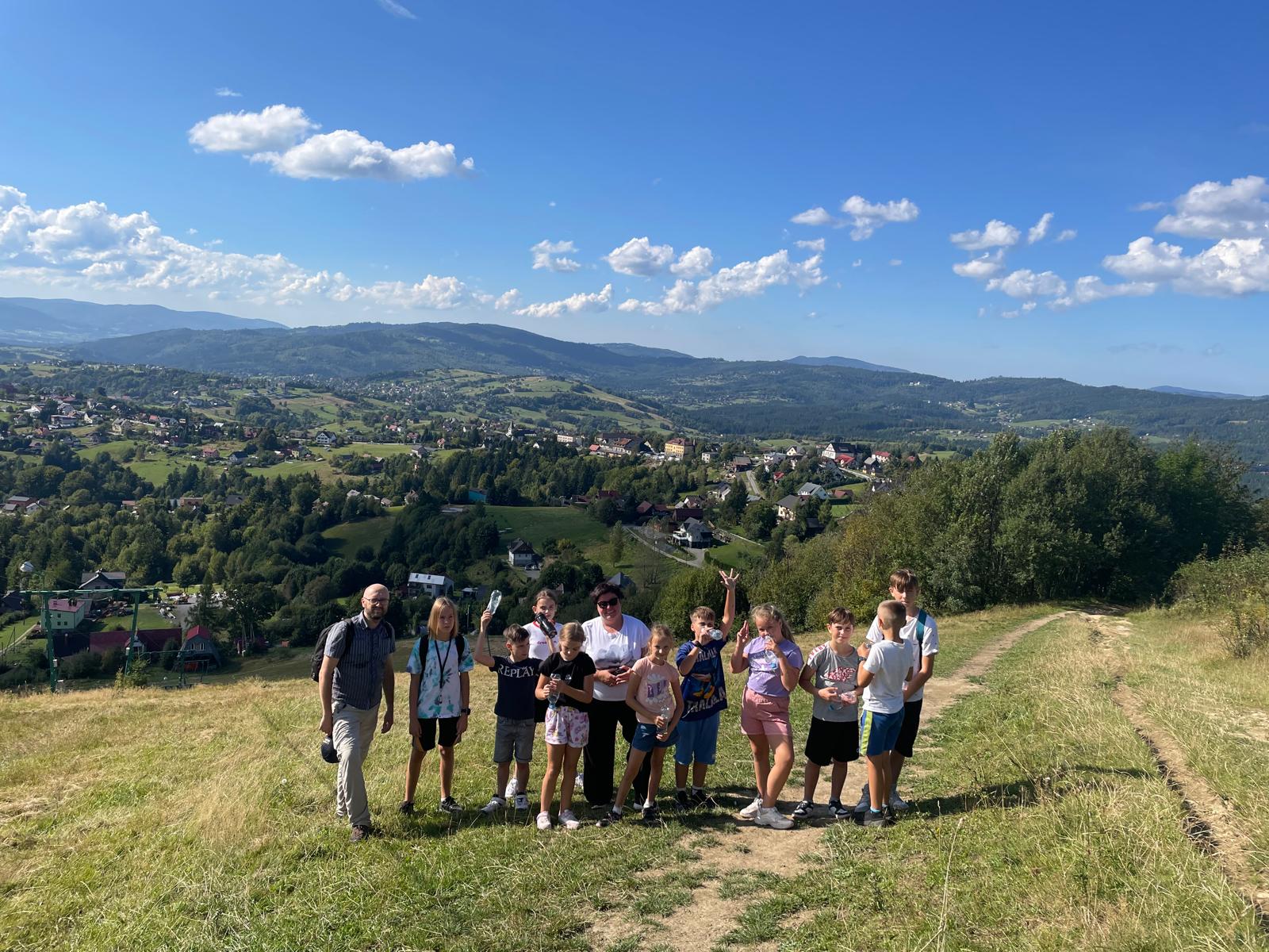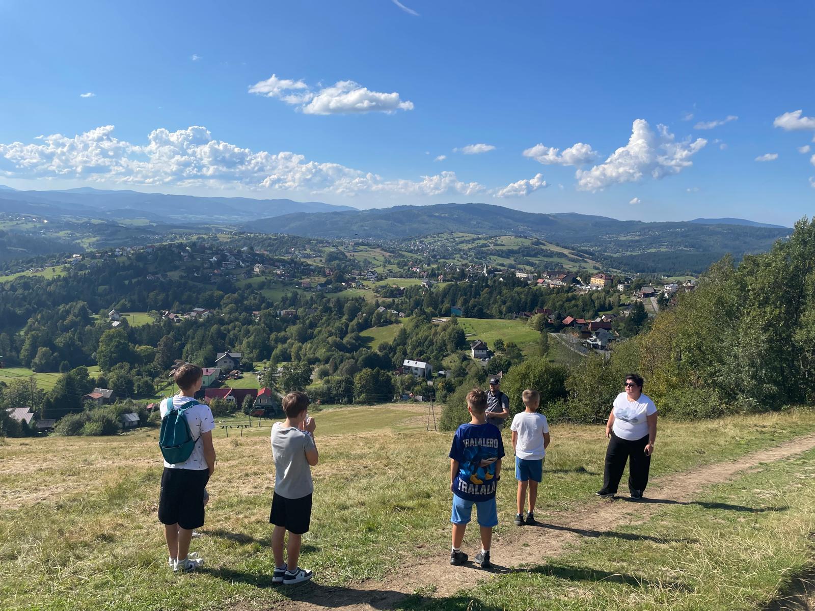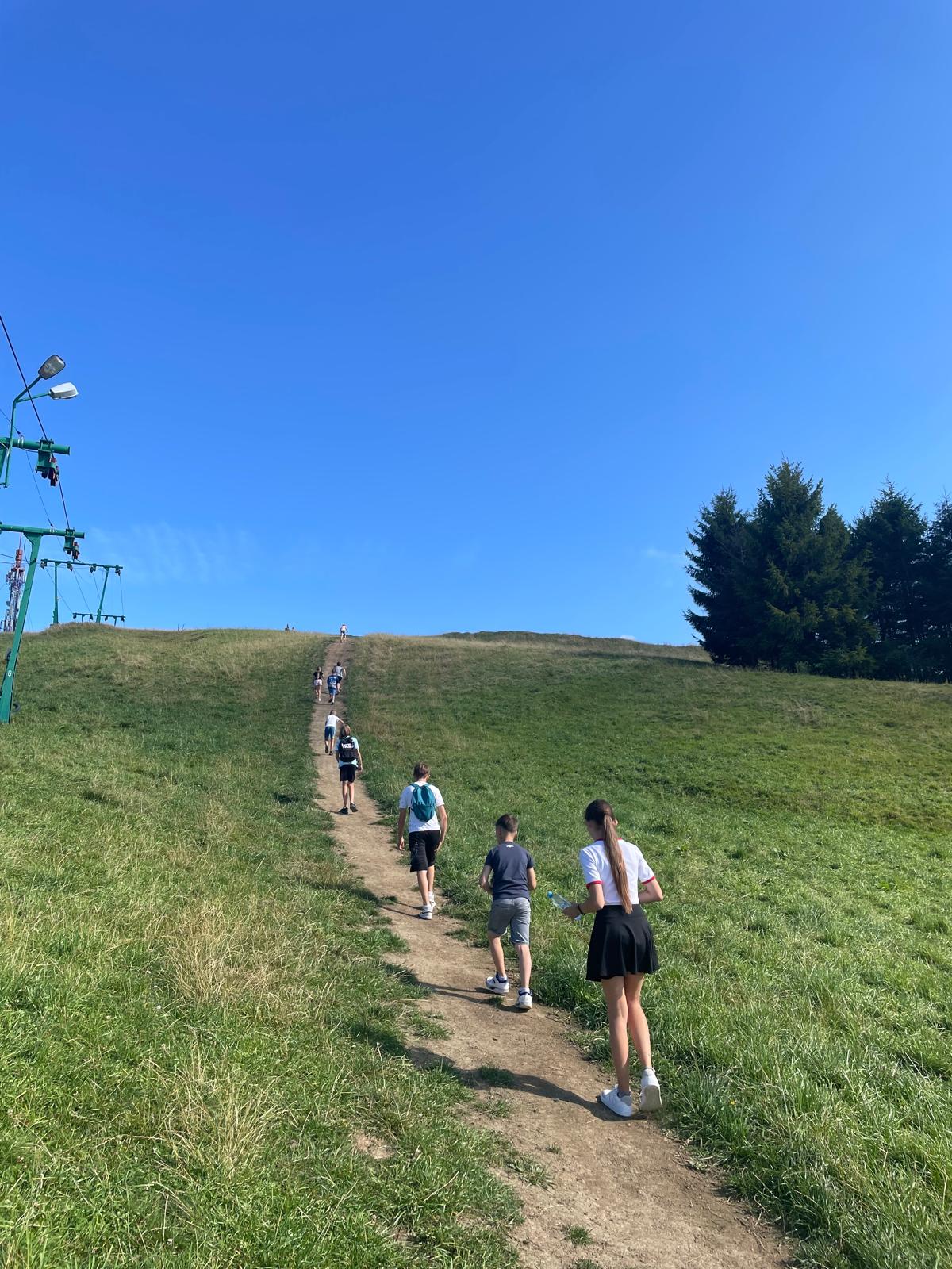 Następnie ruszyliśmy w teren! Szlak naszej wędrówki prowadził od kościoła w Koniakowie aż na Ochodzitą. Nie mogliśmy przecież odpuścić tego miejsca! Podejście było strome, ale daliśmy radę!