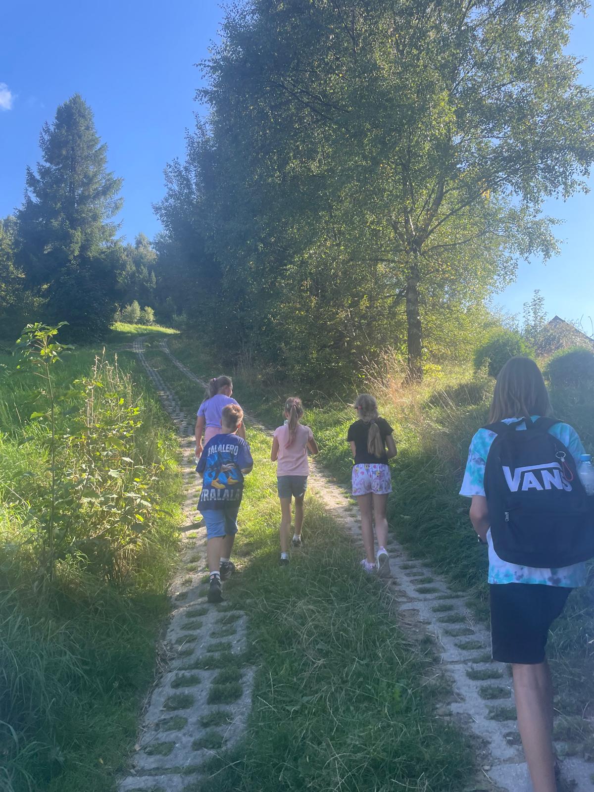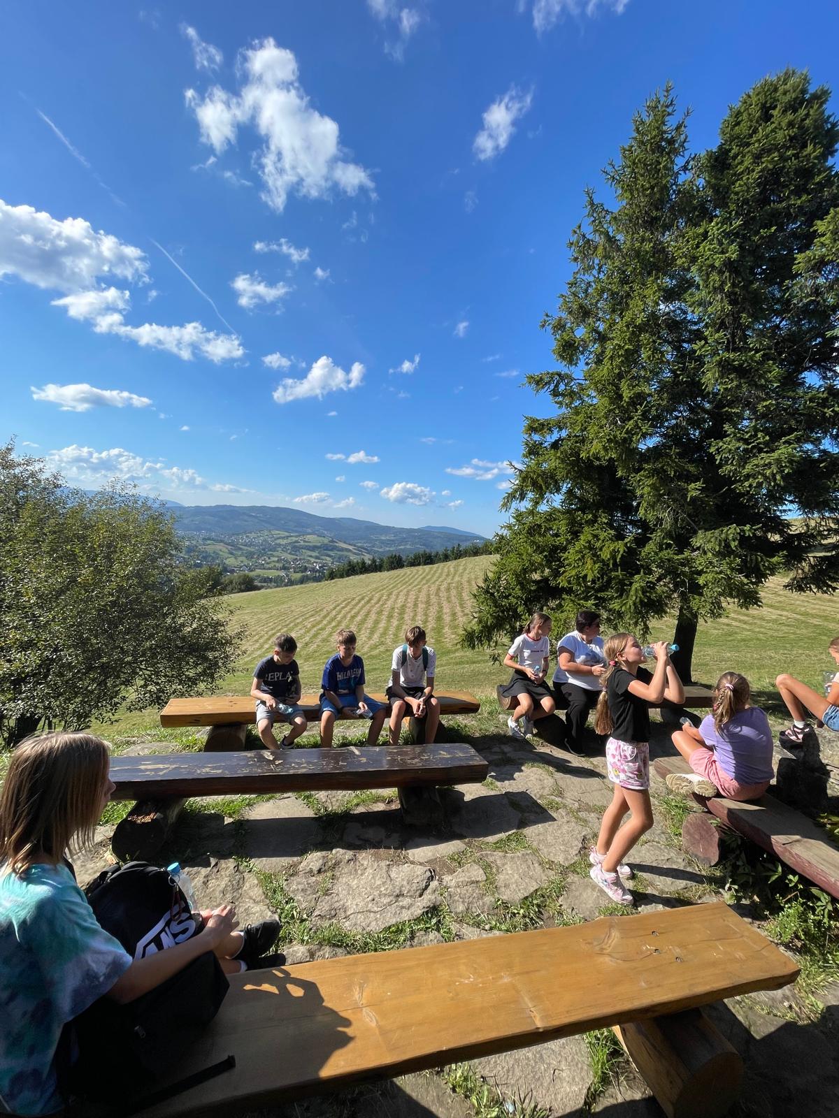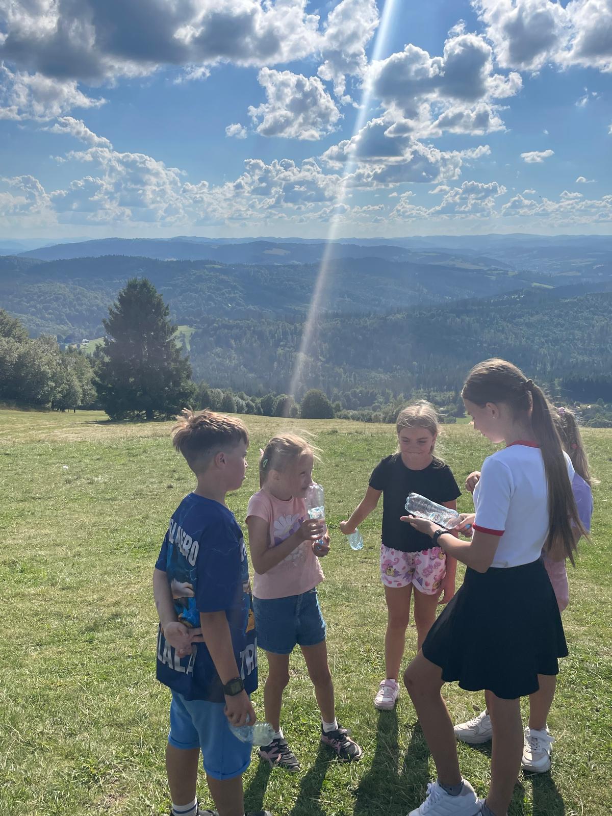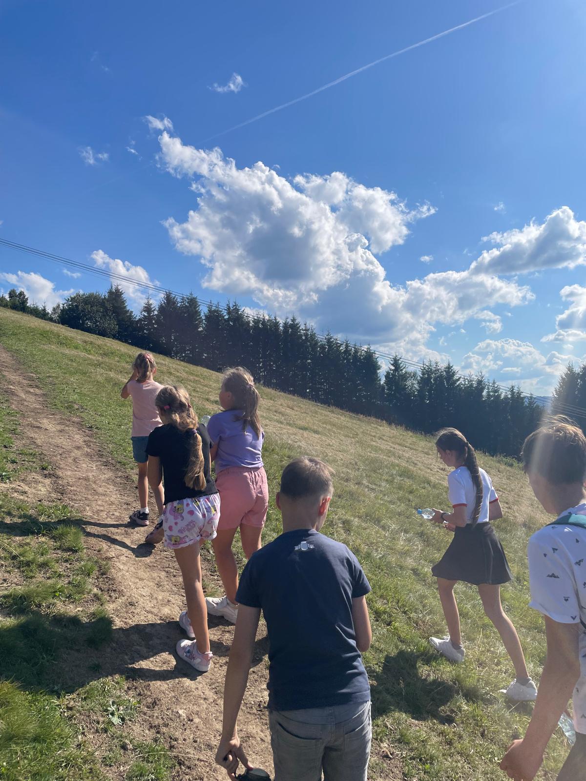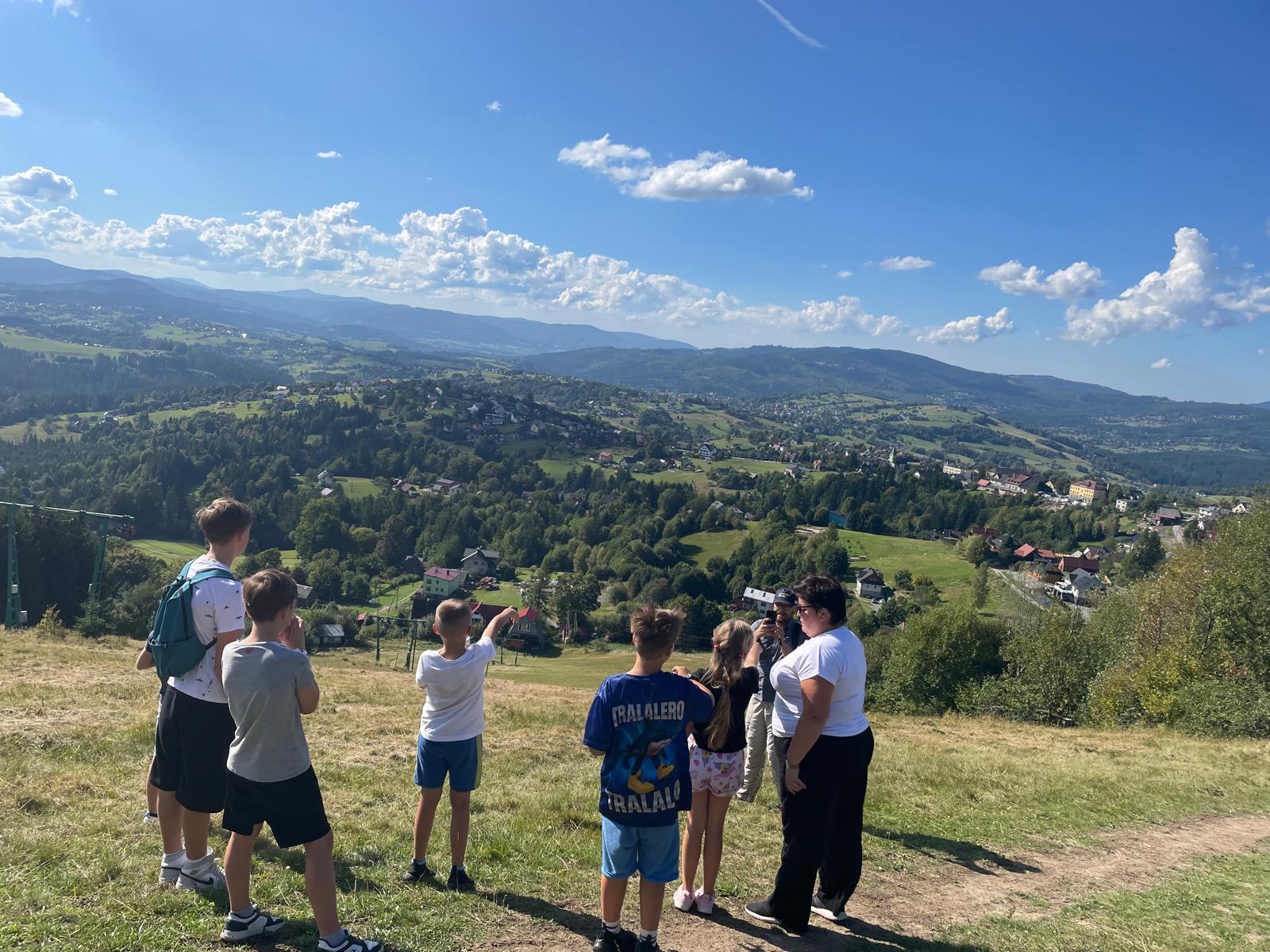 Następnie ruszyliśmy w teren! Szlak naszej wędrówki prowadził od kościoła w Koniakowie aż na Ochodzitą. Nie mogliśmy przecież odpuścić tego miejsca! Podejście było strome, ale daliśmy radę!