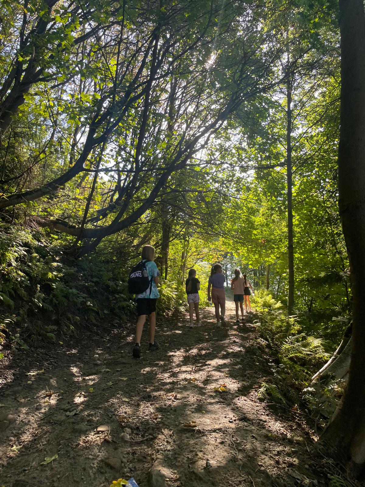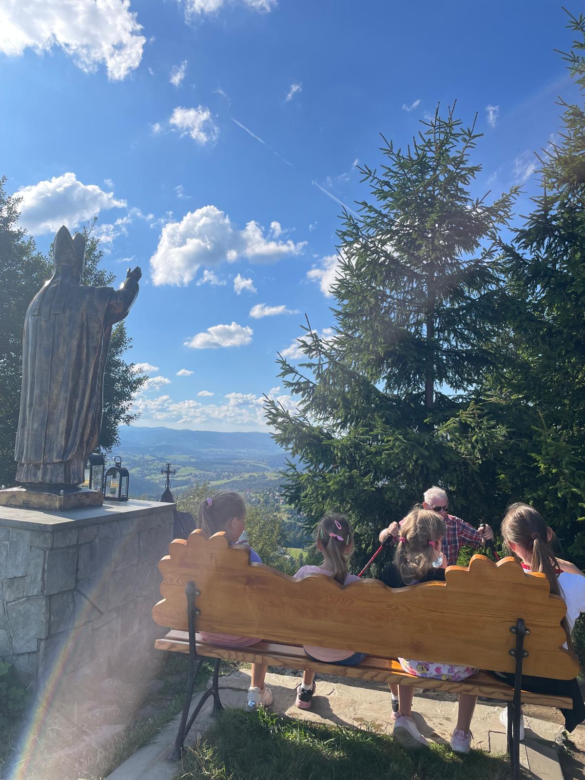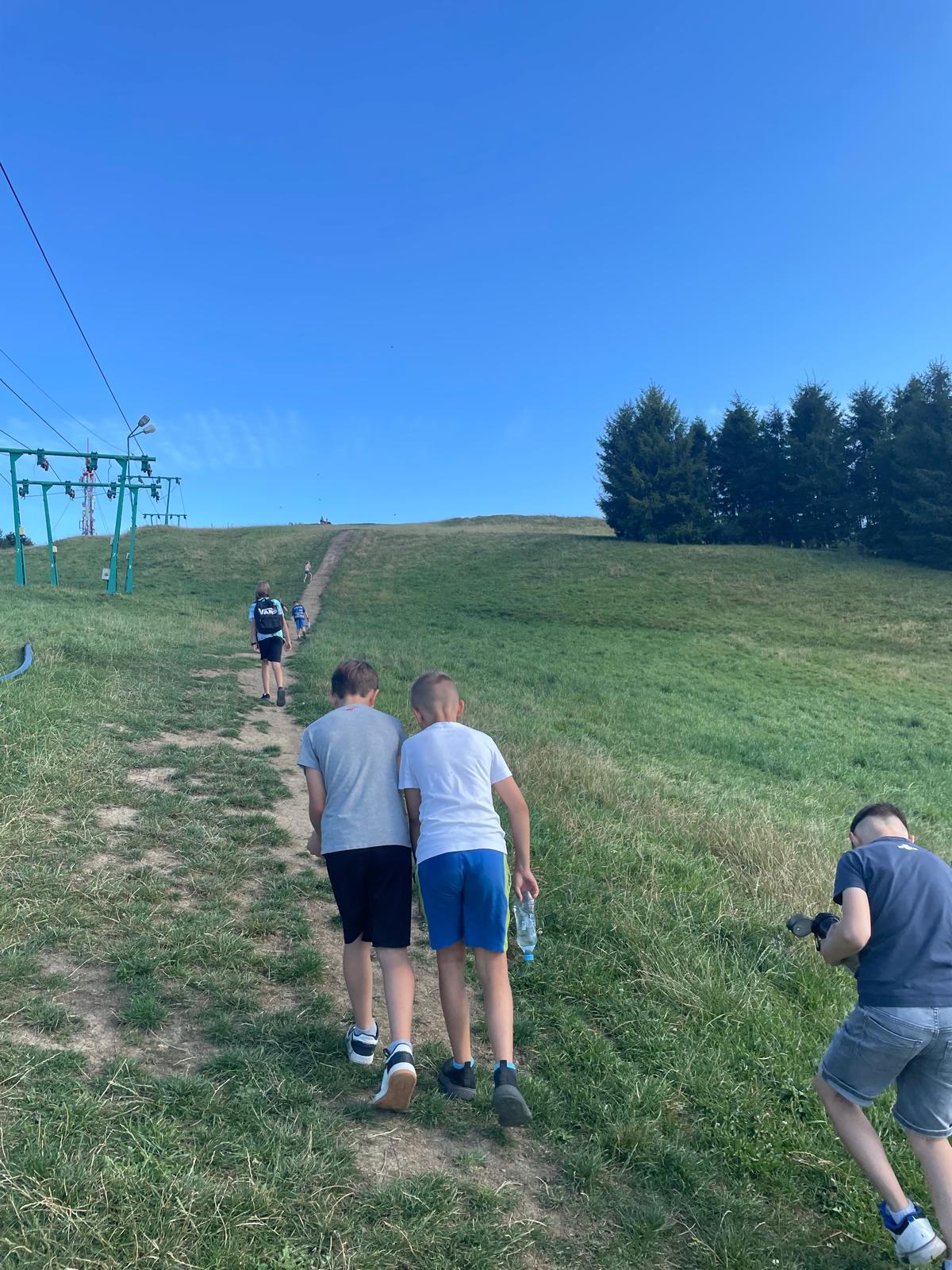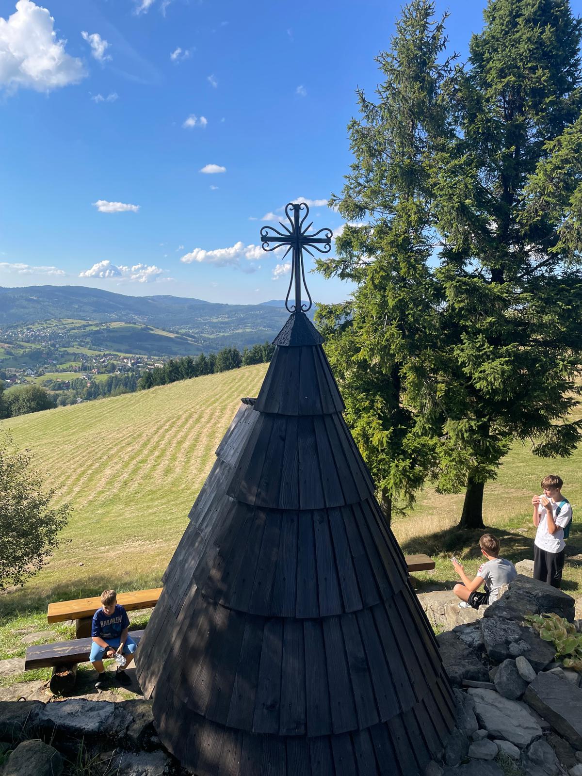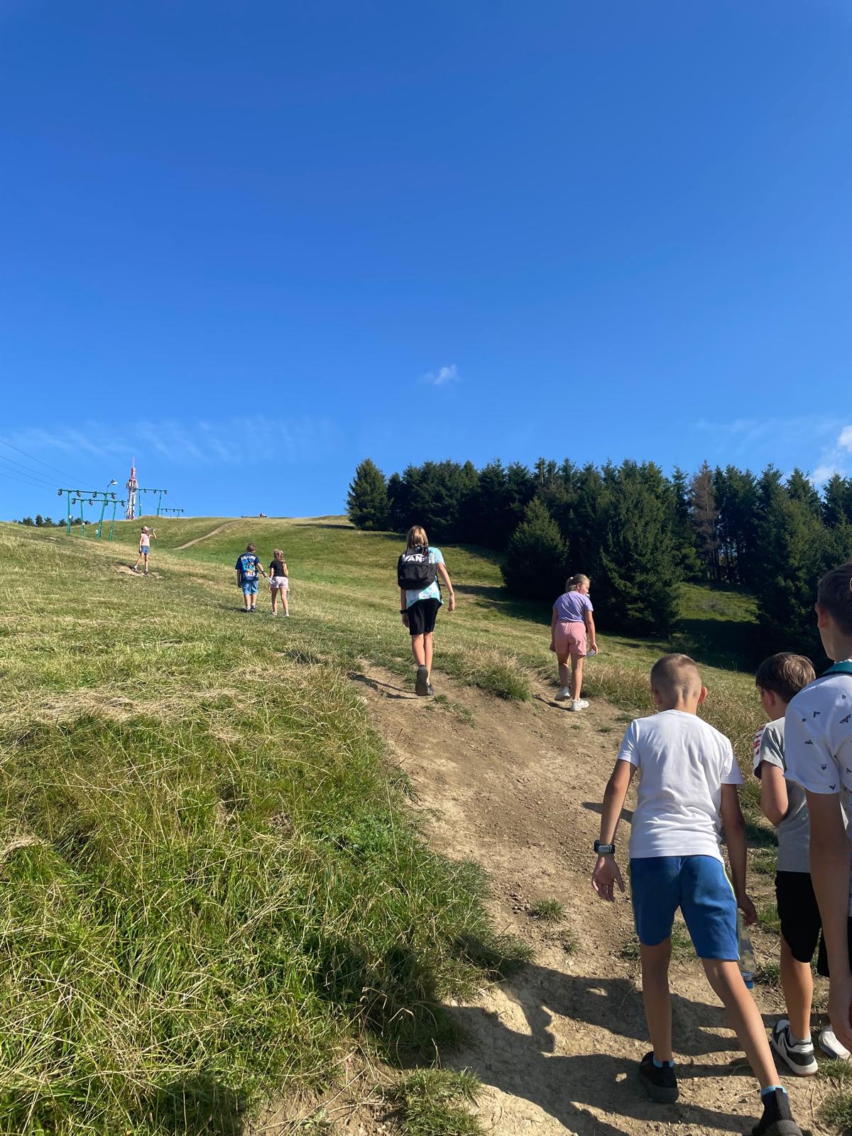 Następnie ruszyliśmy w teren! Szlak naszej wędrówki prowadził od kościoła w Koniakowie aż na Ochodzitą. Nie mogliśmy przecież odpuścić tego miejsca! Podejście było strome, ale daliśmy radę!
