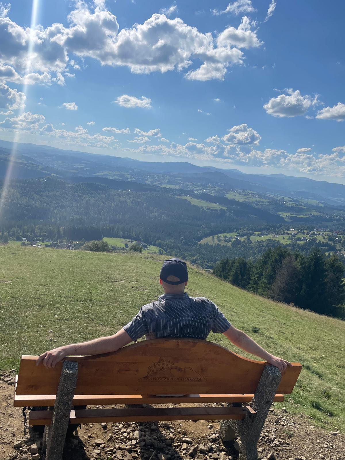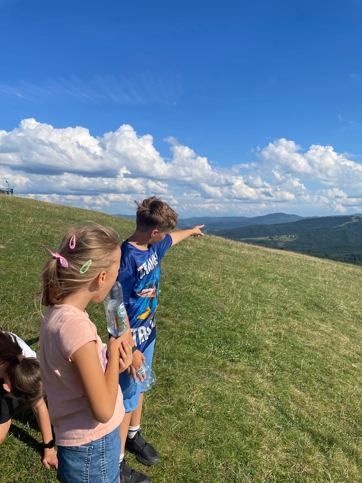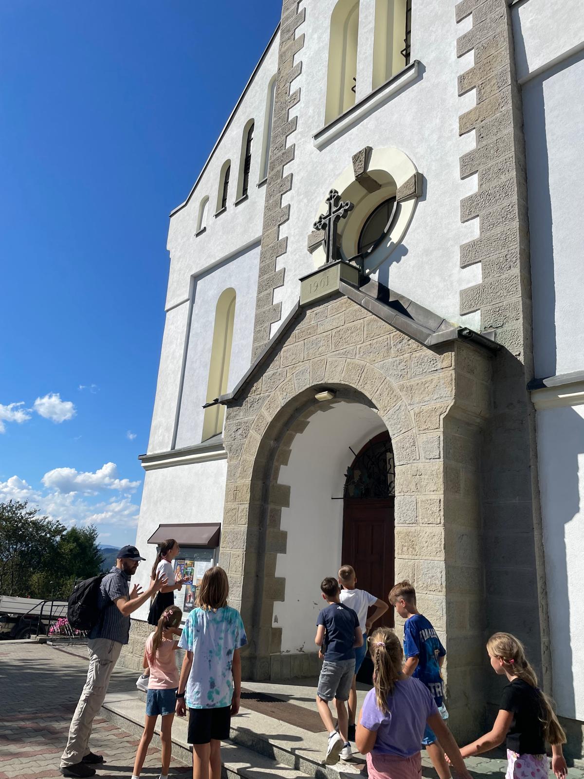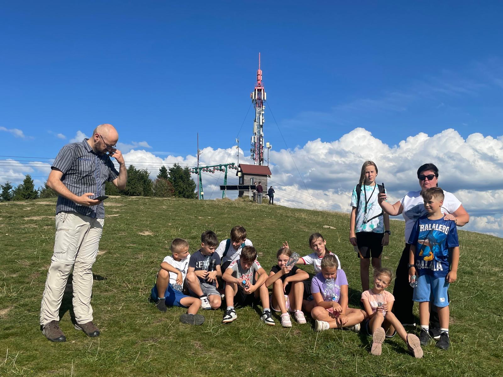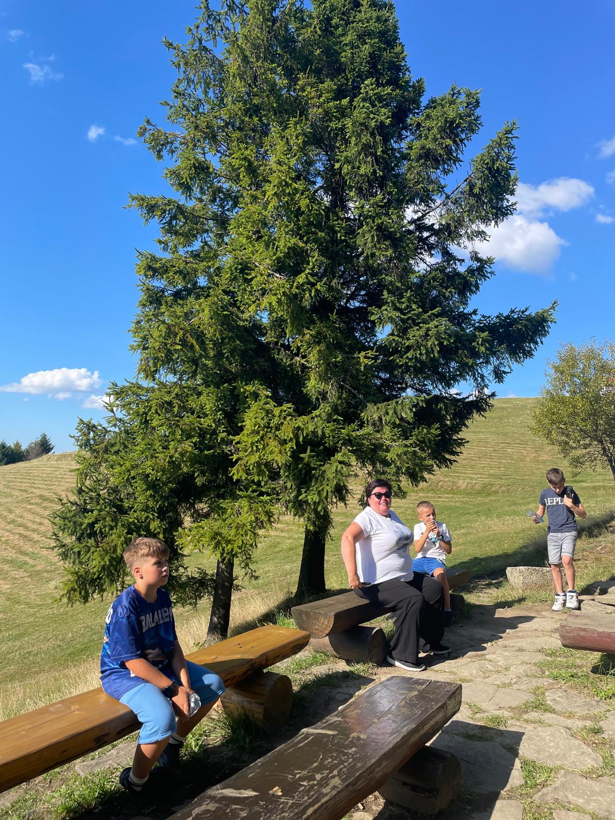 Następnie ruszyliśmy w teren! Szlak naszej wędrówki prowadził od kościoła w Koniakowie aż na Ochodzitą. Nie mogliśmy przecież odpuścić tego miejsca! Podejście było strome, ale daliśmy radę!