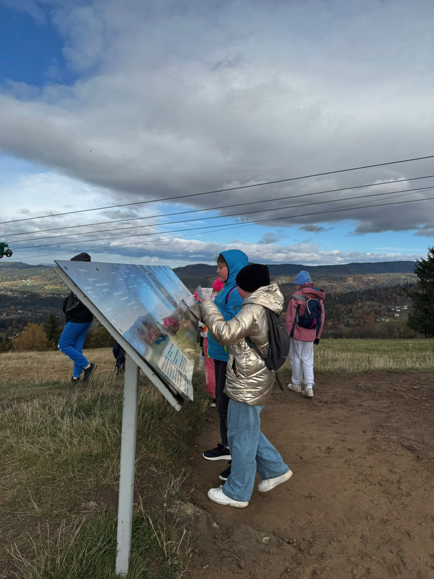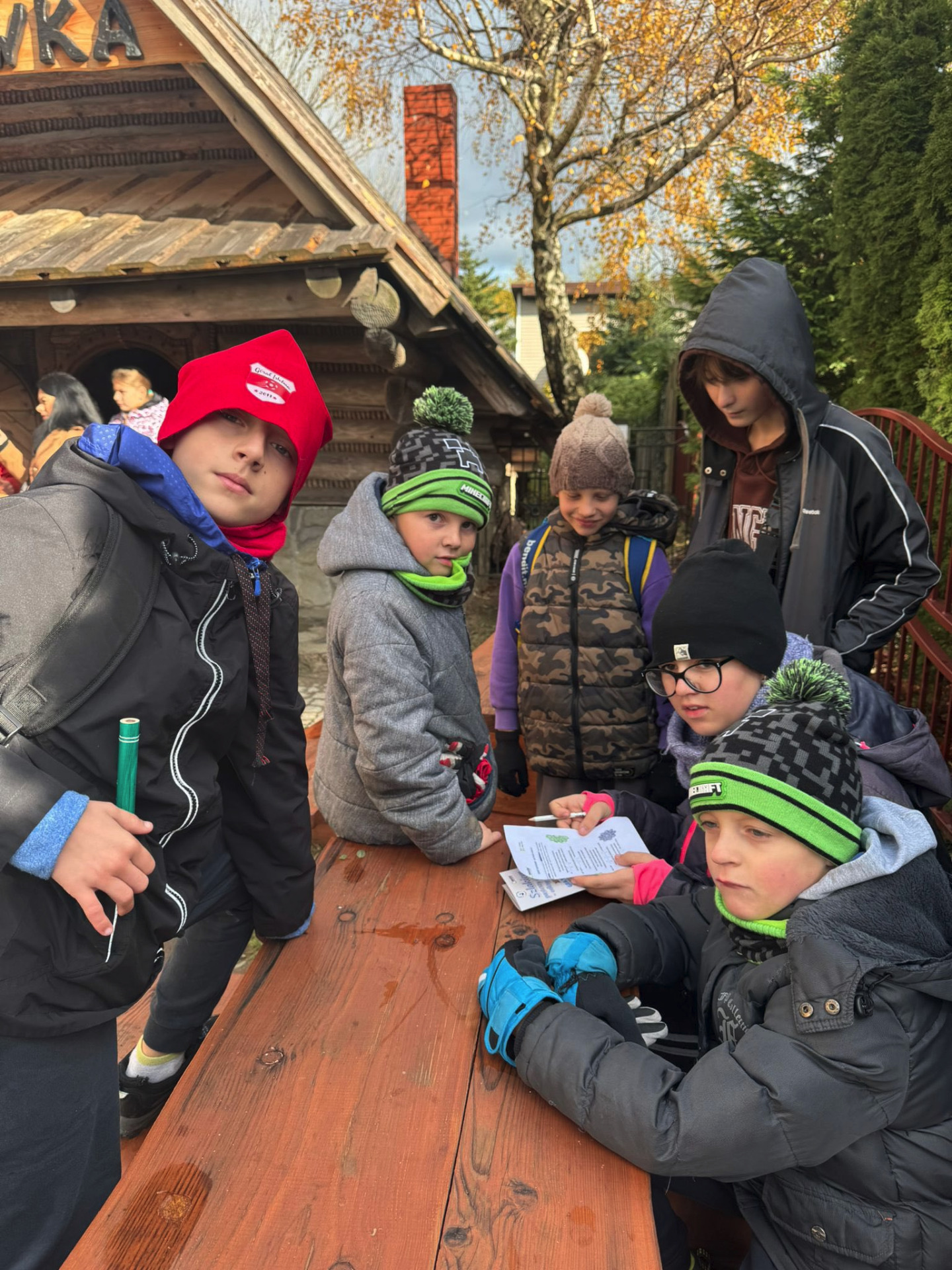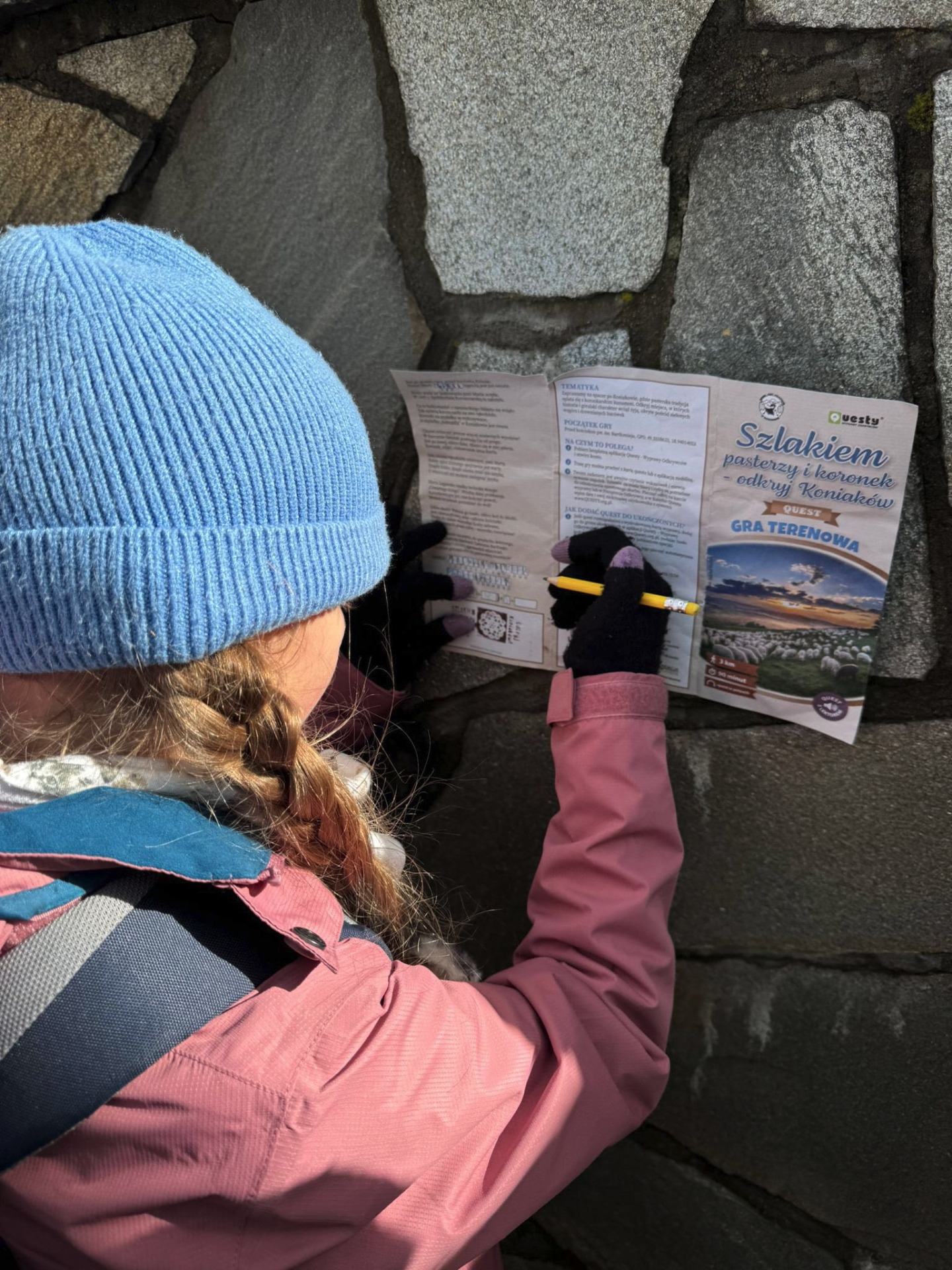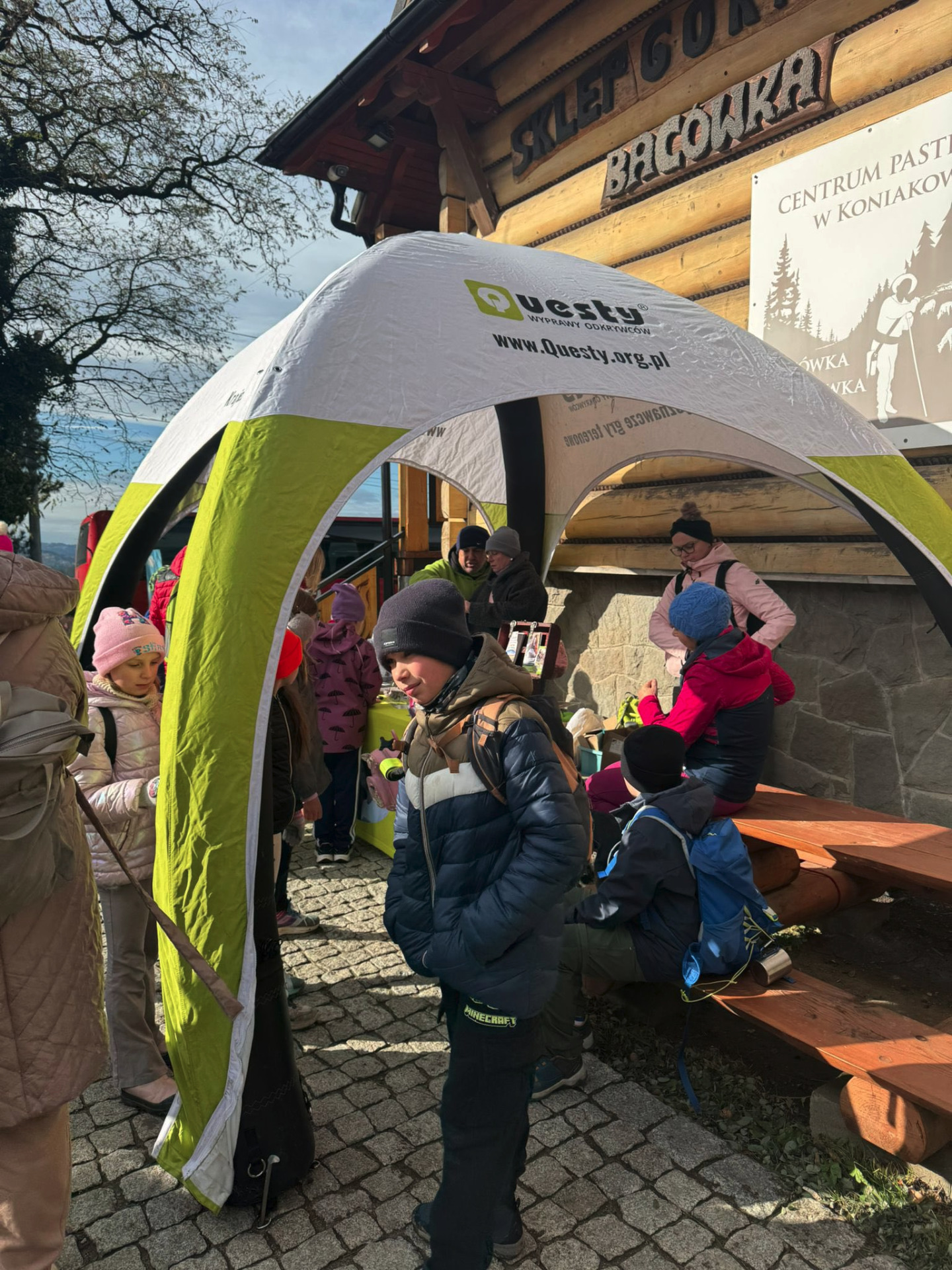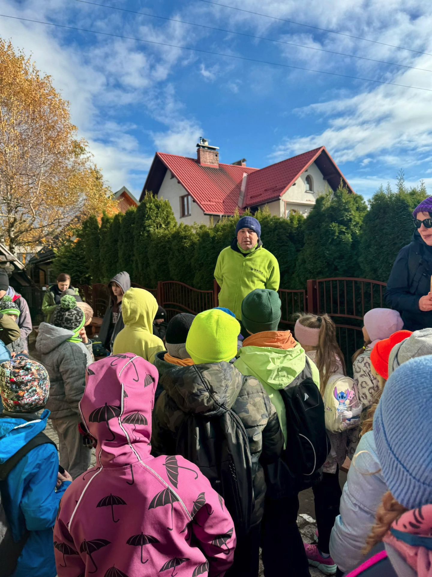 Dzieci otrzymały ulotki i wspólnie wyruszyły „szlakiem koronek i pasterzy”. Choć dzień był chłodny, słońce towarzyszyło nam przez całą drogę