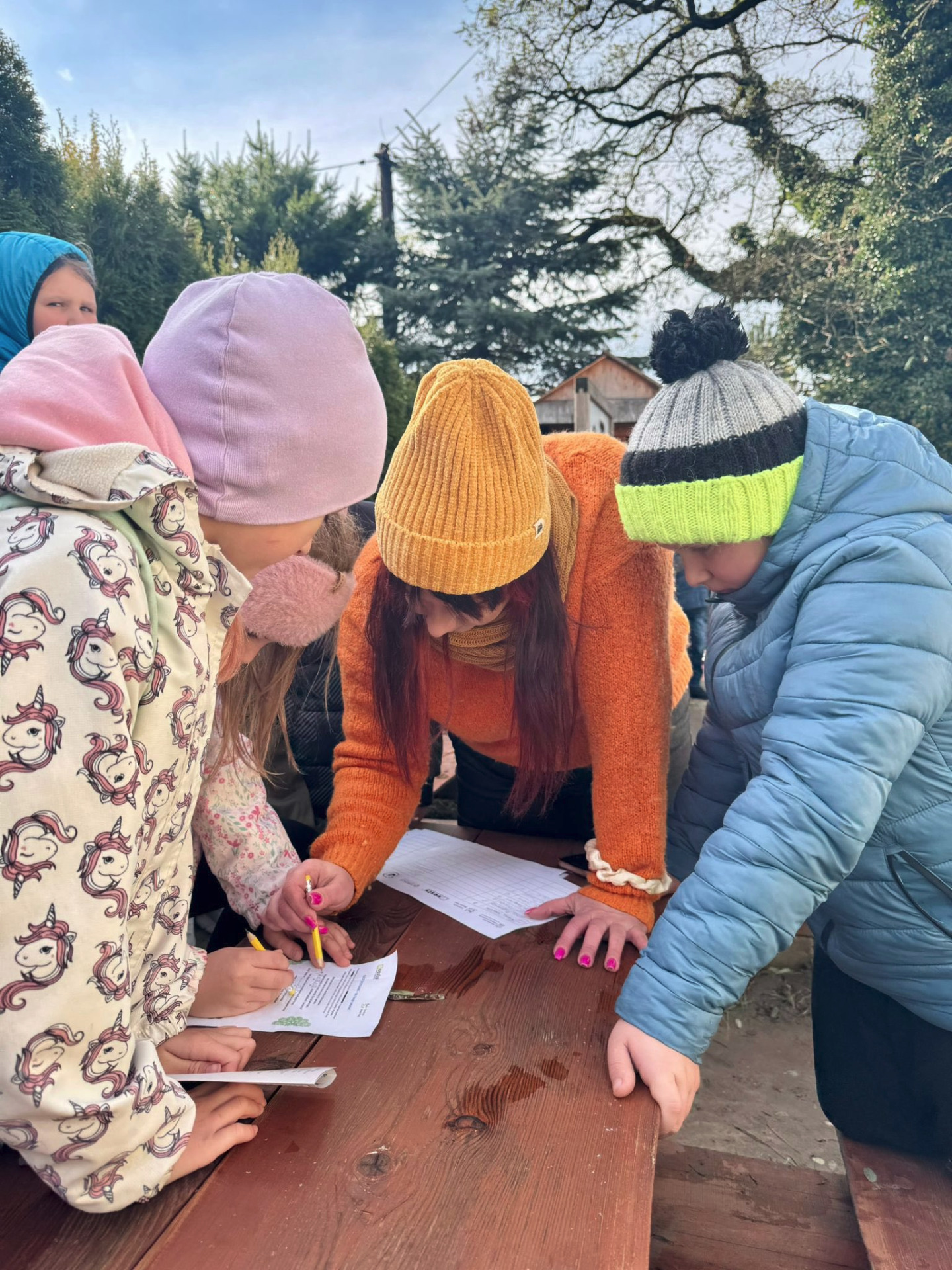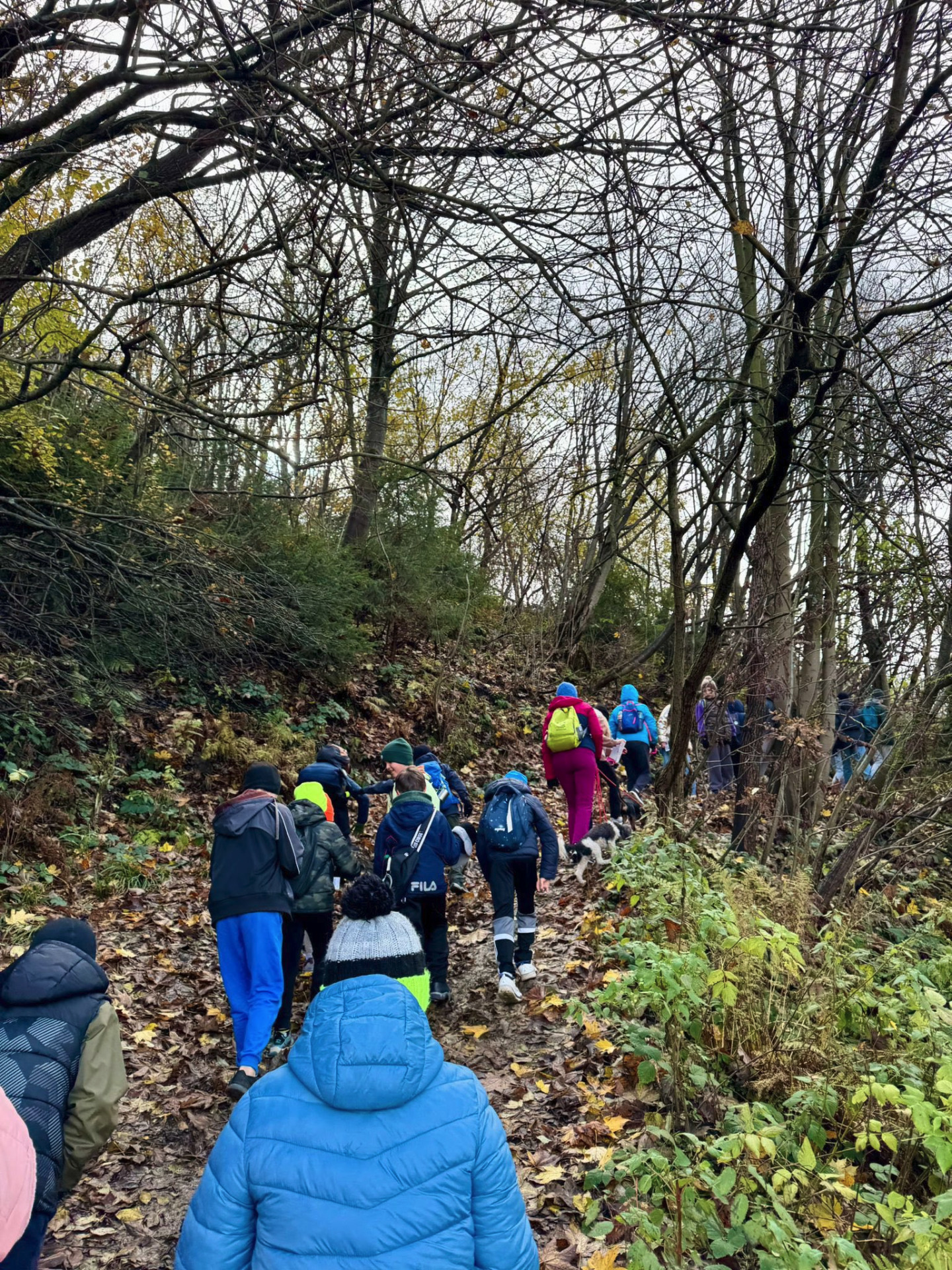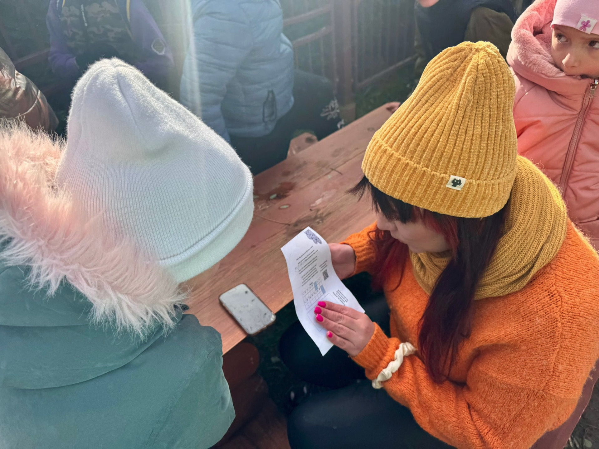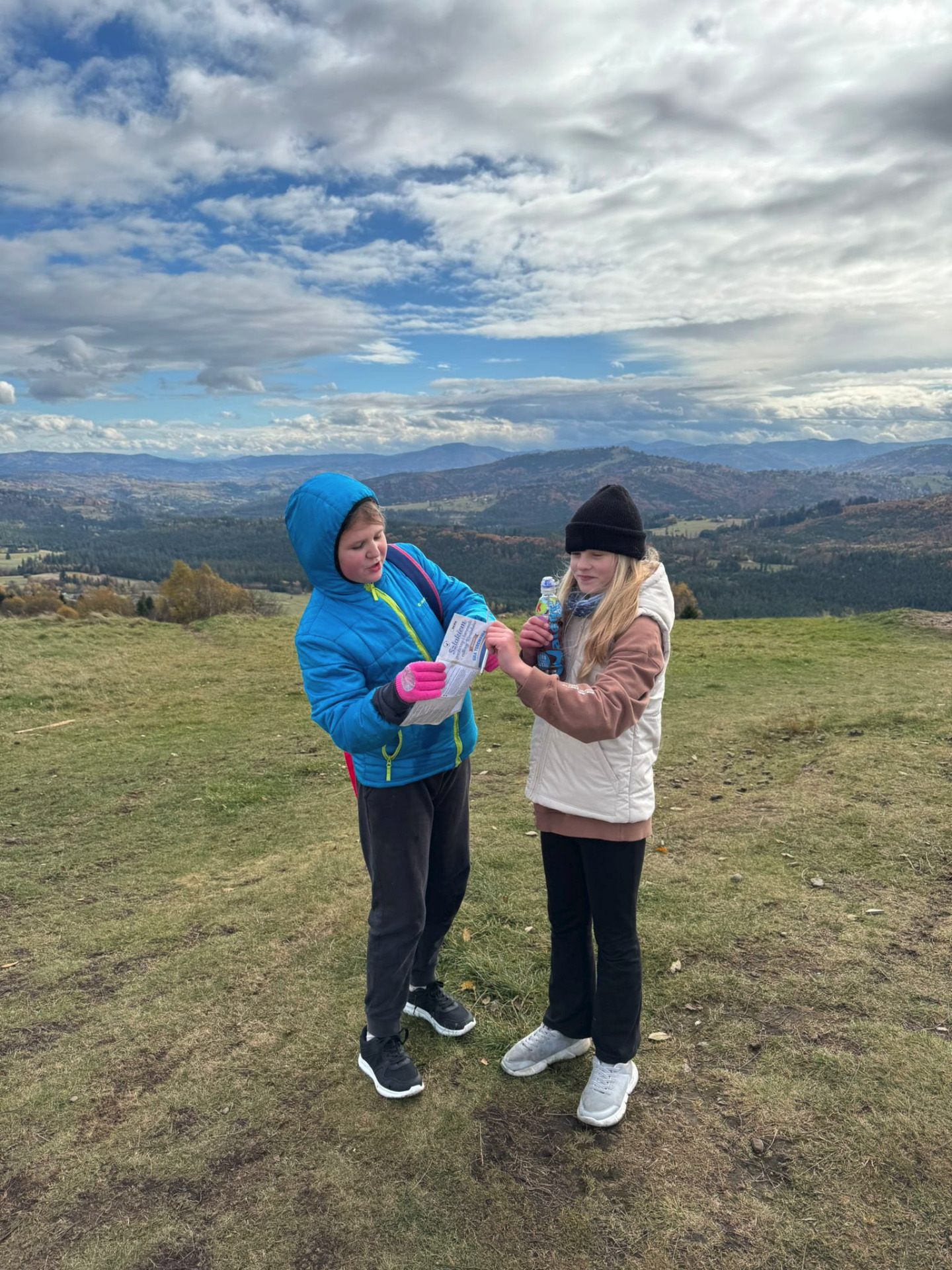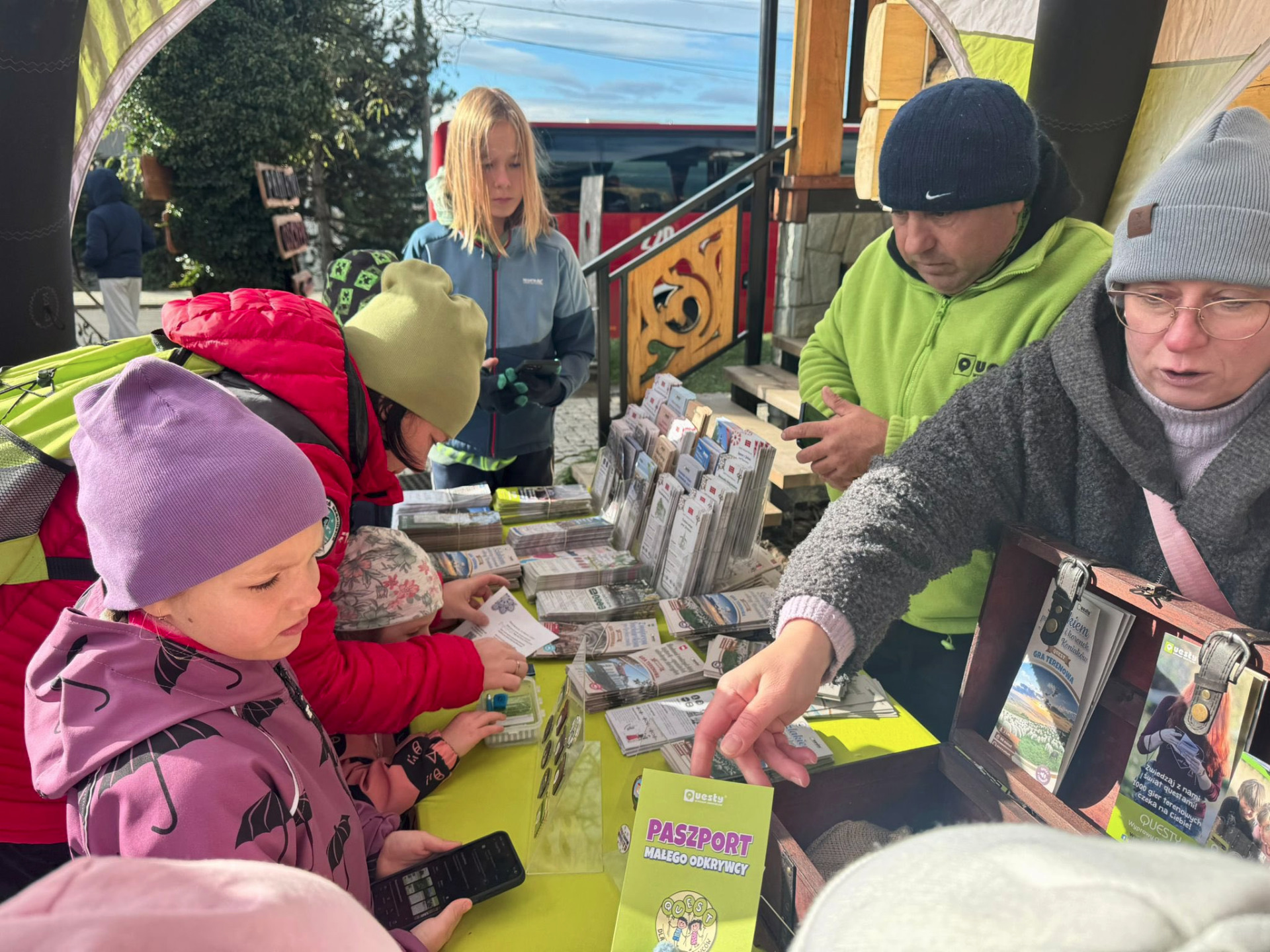 Dzieci otrzymały ulotki i wspólnie wyruszyły „szlakiem koronek i pasterzy”. Choć dzień był chłodny, słońce towarzyszyło nam przez całą drogę