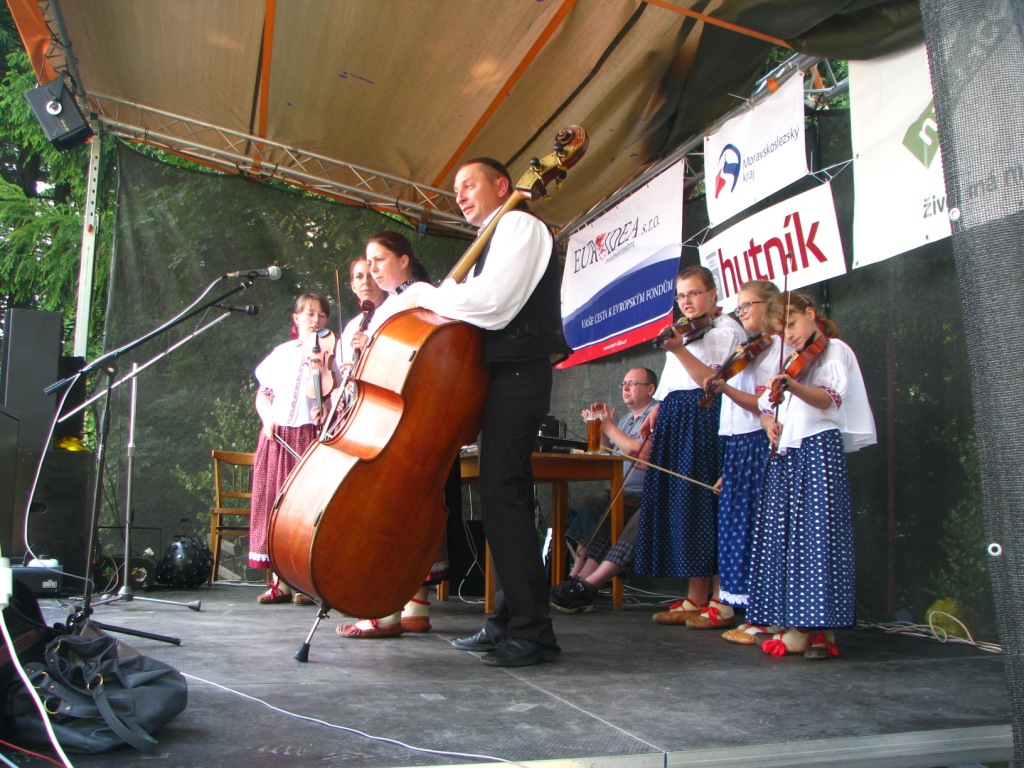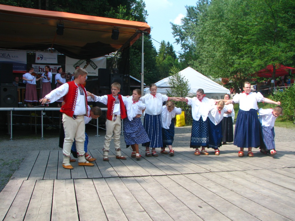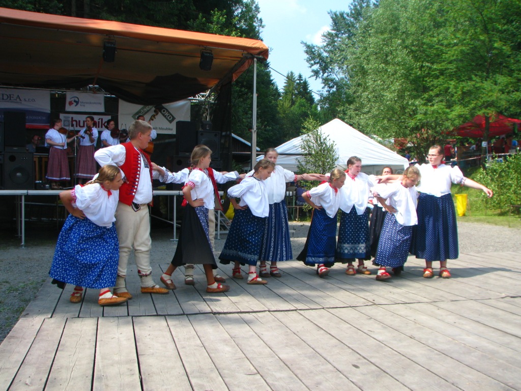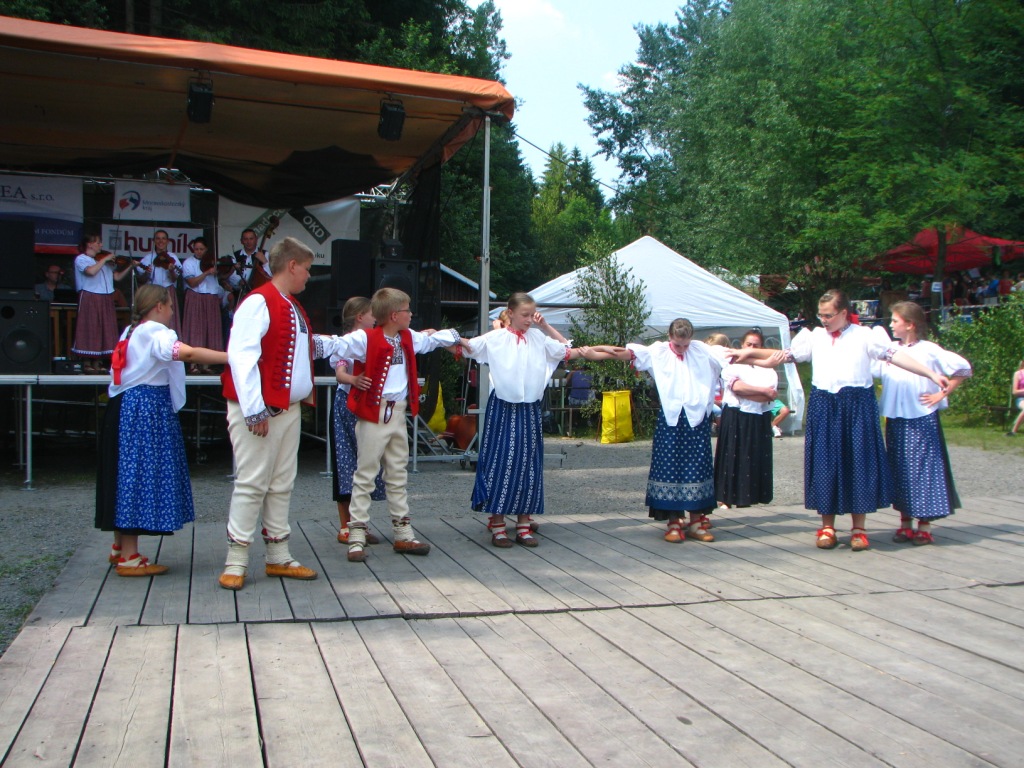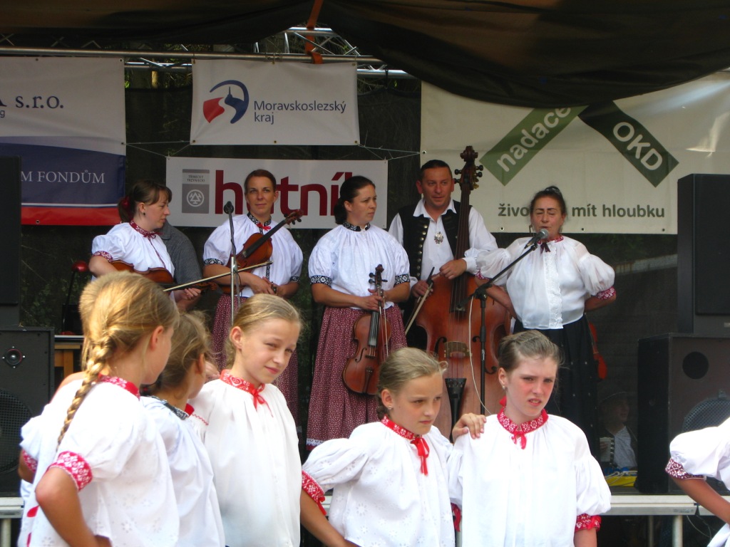 W piątek 5 lipca 2013 zostaliśmy zaproszeni przez władze Gminy Hrcava w Republice Czeskiej aby swoim występem uświetnić obchody 1150 rocznicy przybycia na ziemie Słowian świętych Cyryla i Metodego. Wśród występujących tam zespołów i kapel z Czech i Słowacji byliśmy jedynym „reprezentantem Polski”. Nasz występ podobał się licznie zgromadzonej publiczności o czym świadczyły gromkie brawa. Na początek piękny wiersz zarecytowała pani Urszula Gruszka, która jednocześnie w imieniu zespołu przywitała się z publicznością. Następnie zaprezentowaliśmy tradycyjne pieśni i tańce z naszych stron. Trochę było gorąco ale daliśmy radę. Nad całością czuwała pani Aleksandra Lipowska. Na koniec nasza ogniskowa kapela z panią Olą, Janką i Marzeną oraz z panem Andrzejem w składzie dała krótki koncert, który wyraźnie ożywił zmęczone upałem tłumy ludzi, którzy ze wszystkich stron; z Czech, Słowacji i Polski przybyli na jubileuszowe uroczystości odpustowe w Hrcavie.