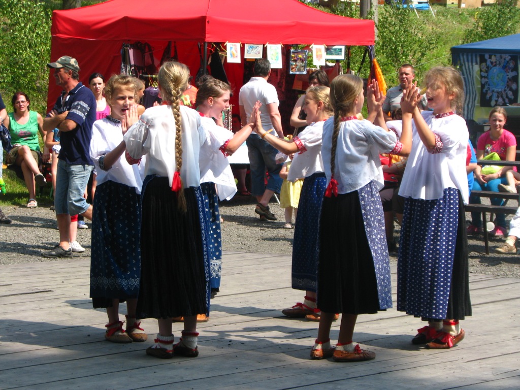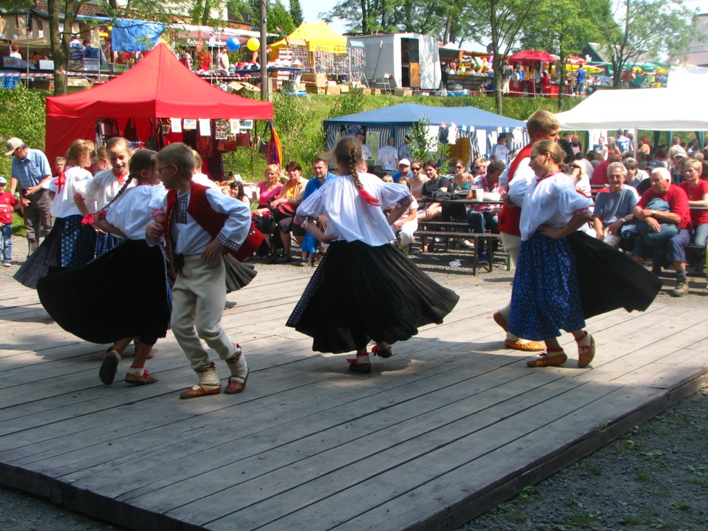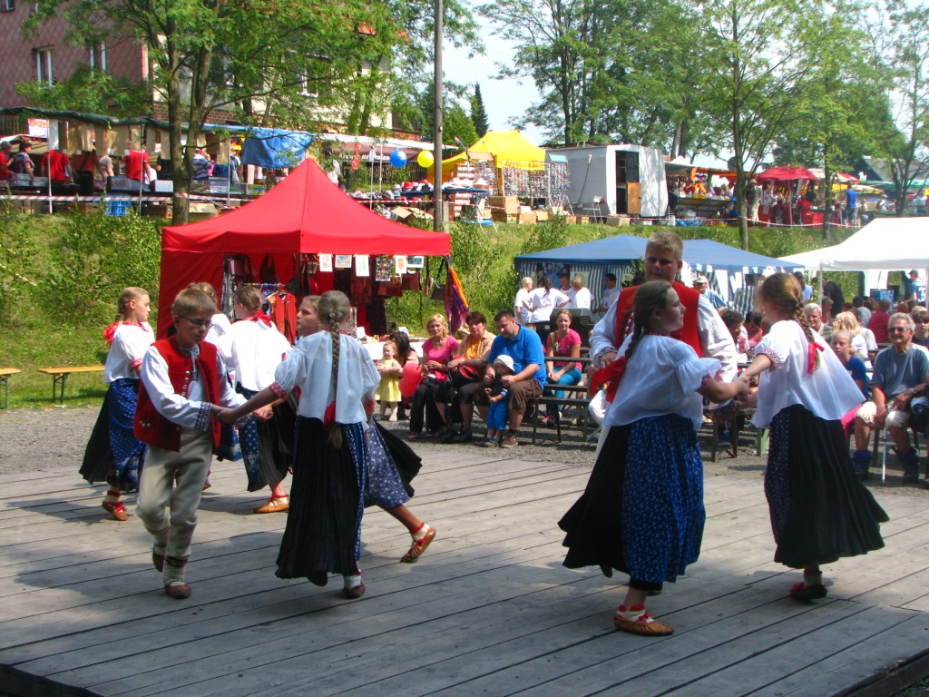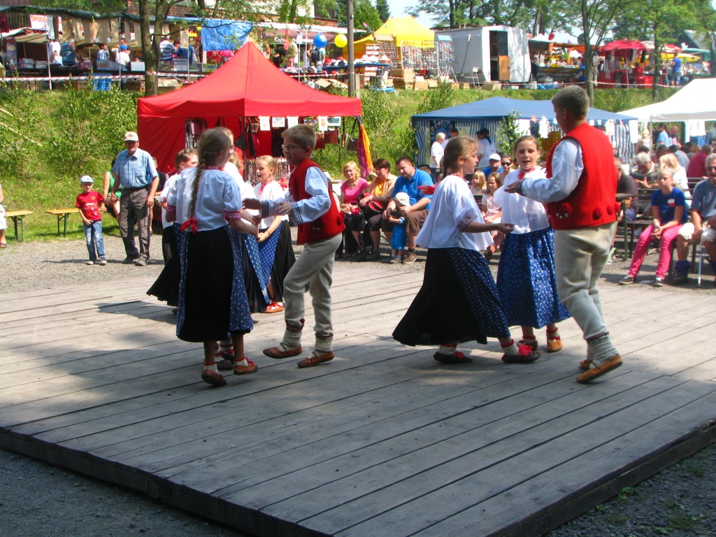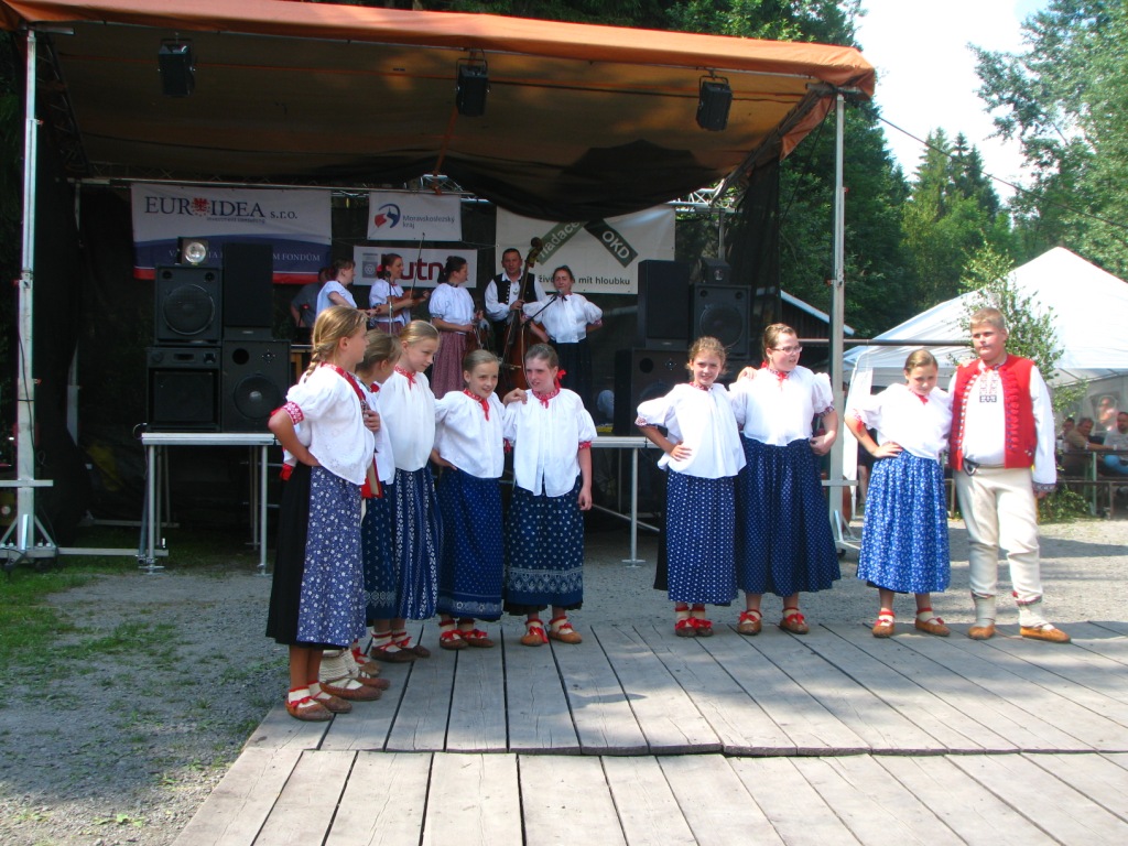 W piątek 5 lipca 2013 zostaliśmy zaproszeni przez władze Gminy Hrcava w Republice Czeskiej aby swoim występem uświetnić obchody 1150 rocznicy przybycia na ziemie Słowian świętych Cyryla i Metodego. Wśród występujących tam zespołów i kapel z Czech i Słowacji byliśmy jedynym „reprezentantem Polski”. Nasz występ podobał się licznie zgromadzonej publiczności o czym świadczyły gromkie brawa. Na początek piękny wiersz zarecytowała pani Urszula Gruszka, która jednocześnie w imieniu zespołu przywitała się z publicznością. Następnie zaprezentowaliśmy tradycyjne pieśni i tańce z naszych stron. Trochę było gorąco ale daliśmy radę. Nad całością czuwała pani Aleksandra Lipowska. Na koniec nasza ogniskowa kapela z panią Olą, Janką i Marzeną oraz z panem Andrzejem w składzie dała krótki koncert, który wyraźnie ożywił zmęczone upałem tłumy ludzi, którzy ze wszystkich stron; z Czech, Słowacji i Polski przybyli na jubileuszowe uroczystości odpustowe w Hrcavie.