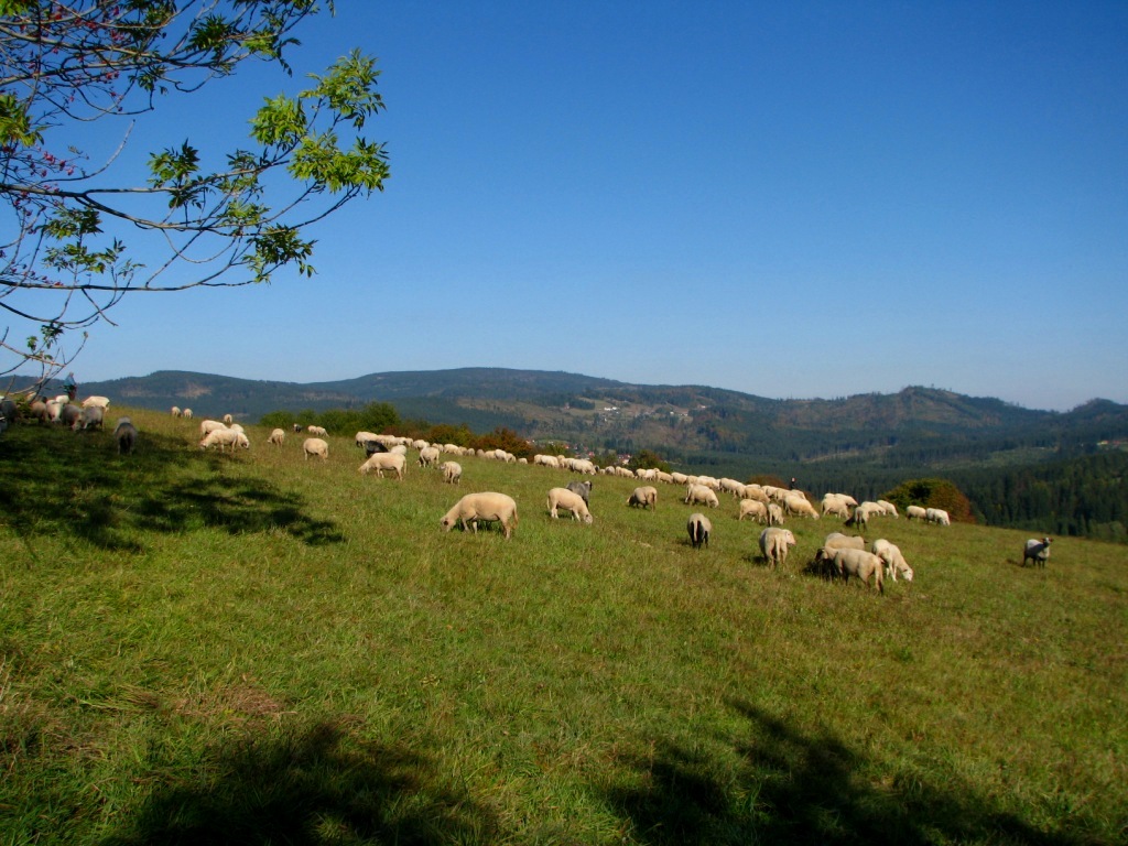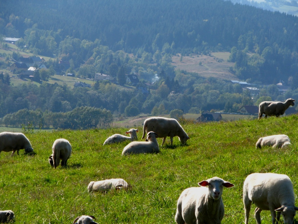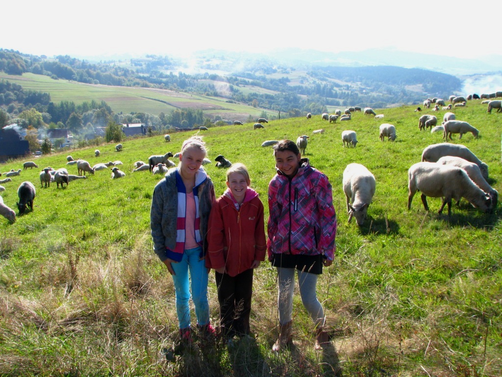 Uczestnicy koła komputerowego z Istebnej wykorzystali piękną słoneczną pogodę i razem ze swoim opiekunem wyszli w plener aby wykonać parę zdjęć, które następnie będą poddane obróbce komputerowej. Wybrali się na Złoty Groń, który góruje nad Istebną. Widoki były wspaniałe. Nie obyło się też bez niespodzianki. Na stokach Złotego Gronia spotkaliśmy stado ponad 200 owiec (i baranów też :)), dlatego nasza uwaga skupiła się głównie na nich. Udostępniamy parę zdjęć, które wykonaliśmy. Ich autorkami są Agata Kohut, Wiktoria Kohut i Agnieszka Waszut, które też dały się sfotografować.