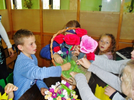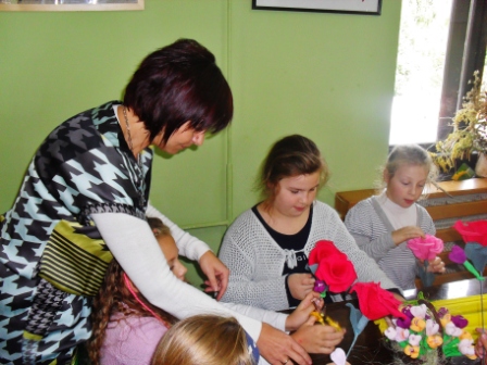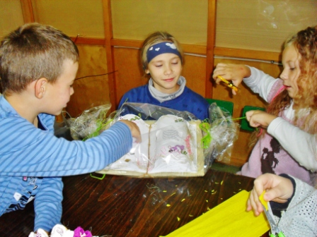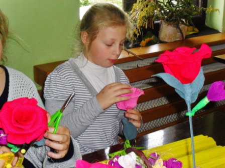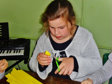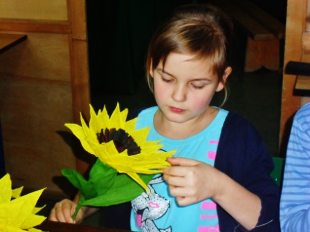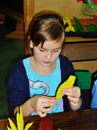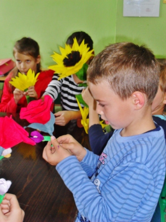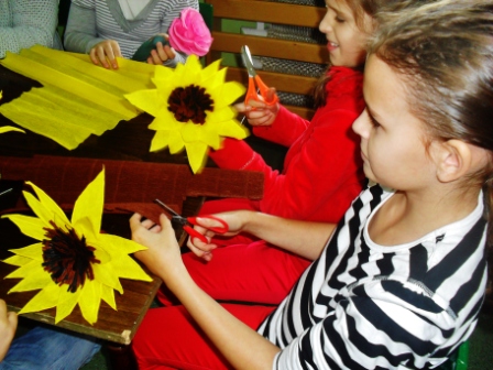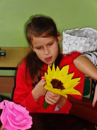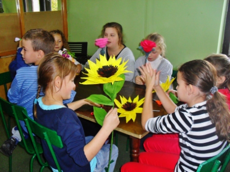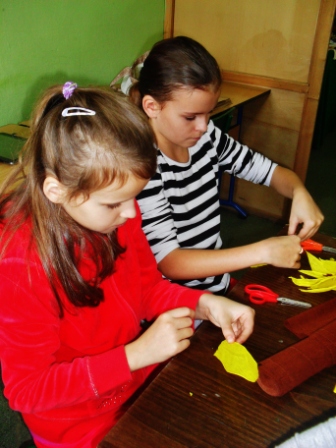 Jesień to najbardziej kolorowa pora roku, dlatego w ramach naszego koła bibułkarskiego dokonujemy prób naśladowania charakterystycznych w tym czasie zjawisk przyrody wykonując z kolorowych bibułek dary które daje nam jesień. Jak widać na załączonych zdjęciach zaangażowanie młodych artystów jest duże. Nad całością czuwa pani Grażyna Haratyk... a prace są naprawdę piękne oceńcie sami.