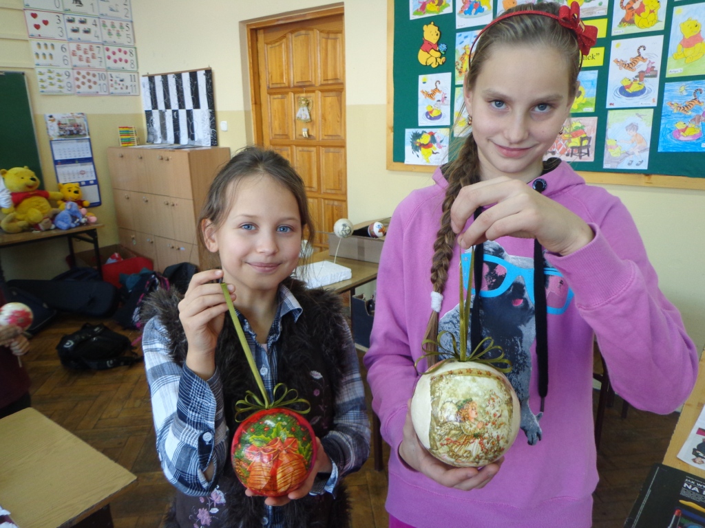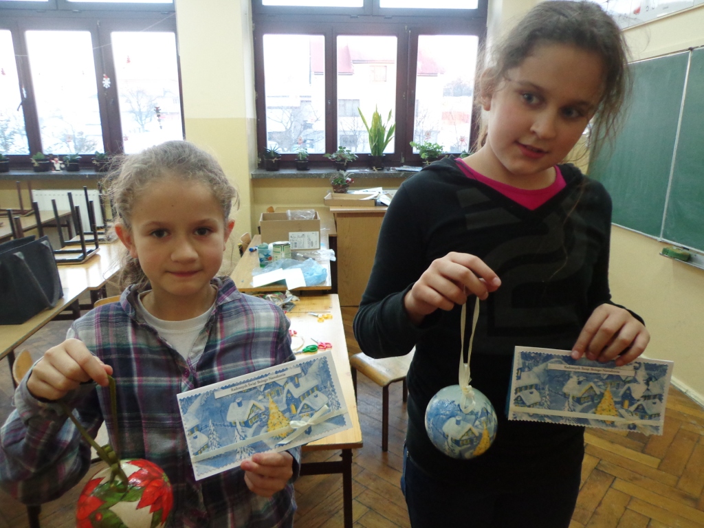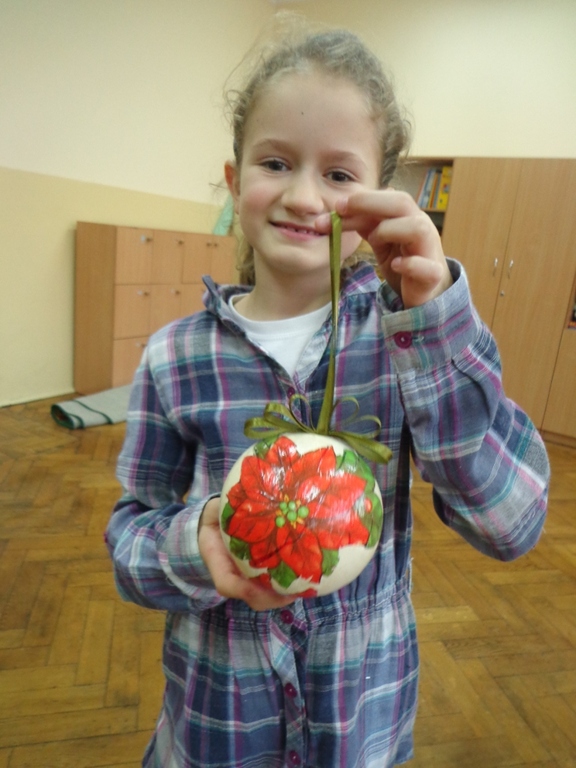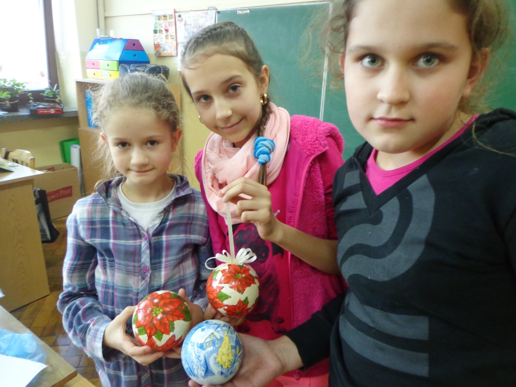 Ogromne zaangażowanie w czasie zajęć oraz niezwykła pomysłowość dzieci pozwoliła na osiągnięcie wspaniałych efektów prac . Niektóre z nich wzięły udział w szkolnym konkursie na „Najpiękniejszą bombkę świąteczną” organizowanym przez SP nr1 w Koniakowie.